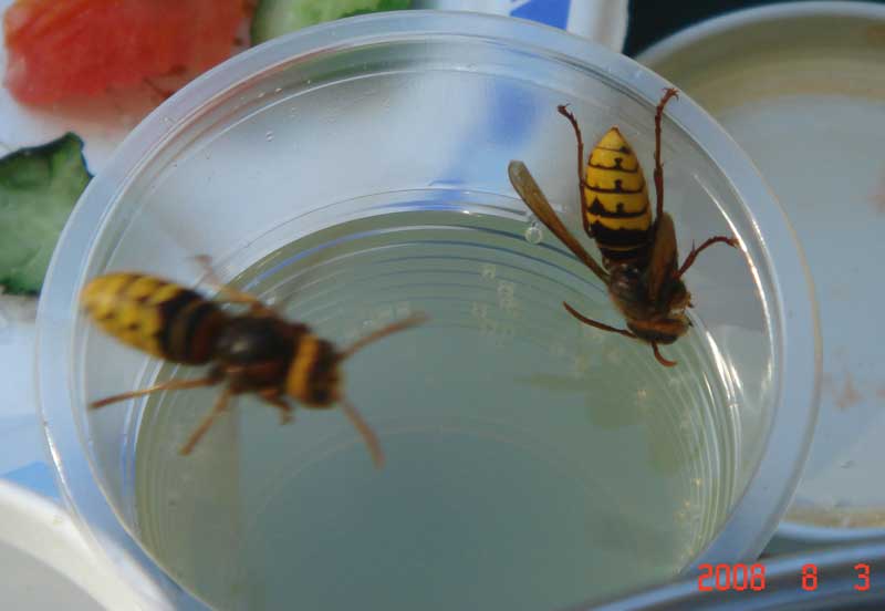Нормальные такие осы, жрали себе шашлык, запивая мартини...