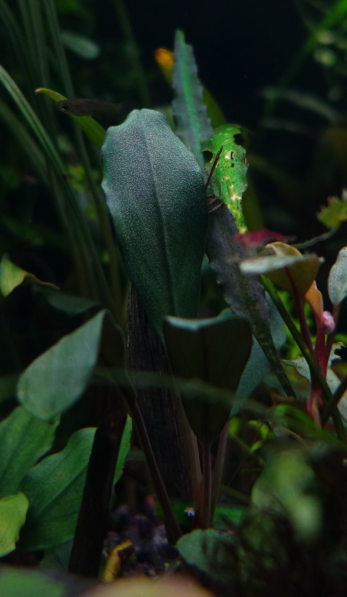 это точно. Еще общипала, листья с какими-то водорослями были, а по-поводу новых думает. Зато один лист изменил окрас, стал более темным с красивым отливом.