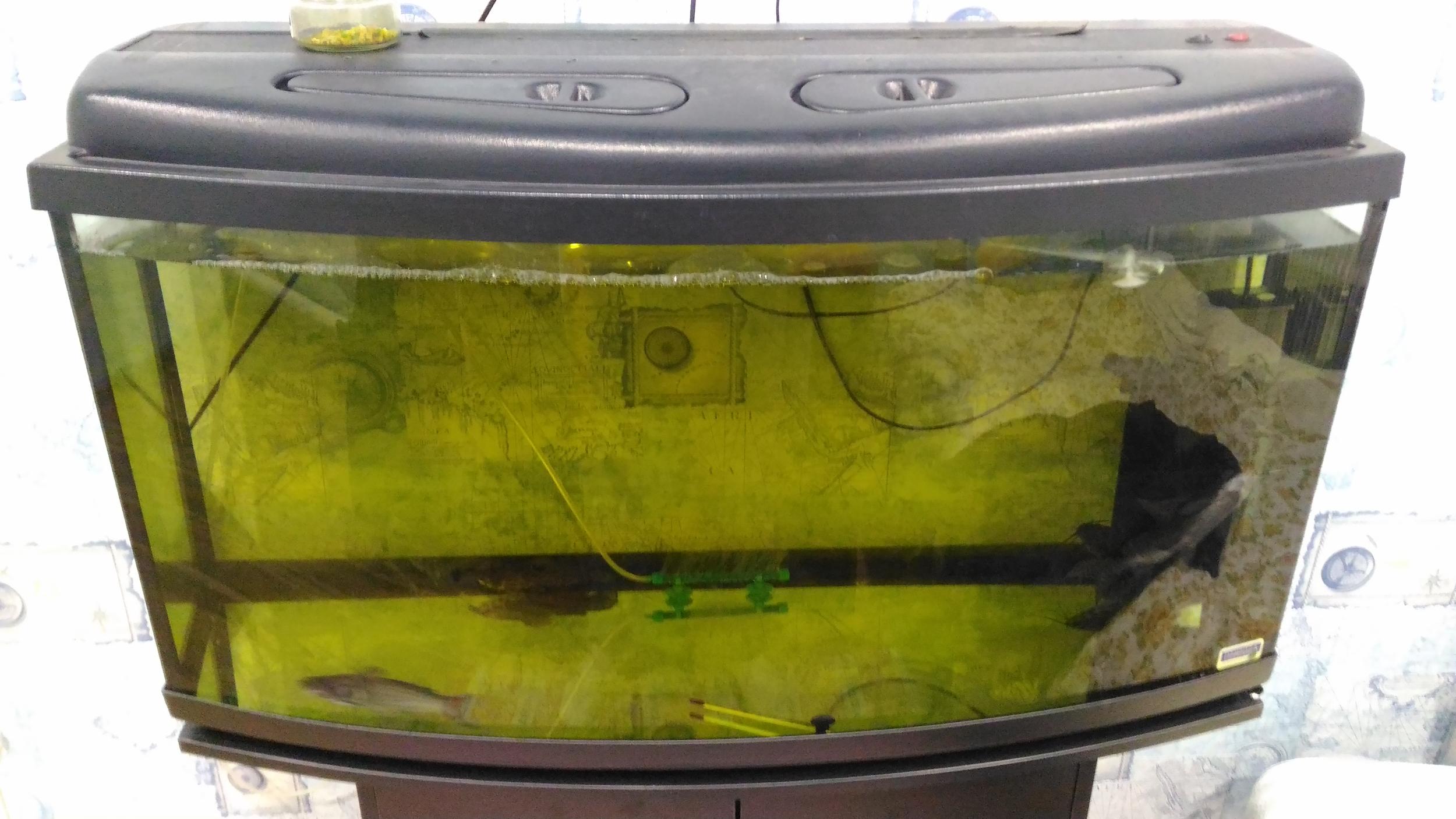 Что интересно, на следующий день приехал к аквариуму, пены уже нет. Долил до полного литров 20-25 воды и не такой уж он зелёный кажется. Что это было?
