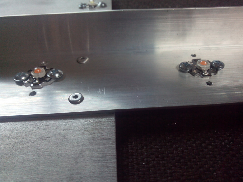 Крепить диоды решил винтами. Разметил, насверлил дырок, накрутил резьбу и начал садить на термопасту.