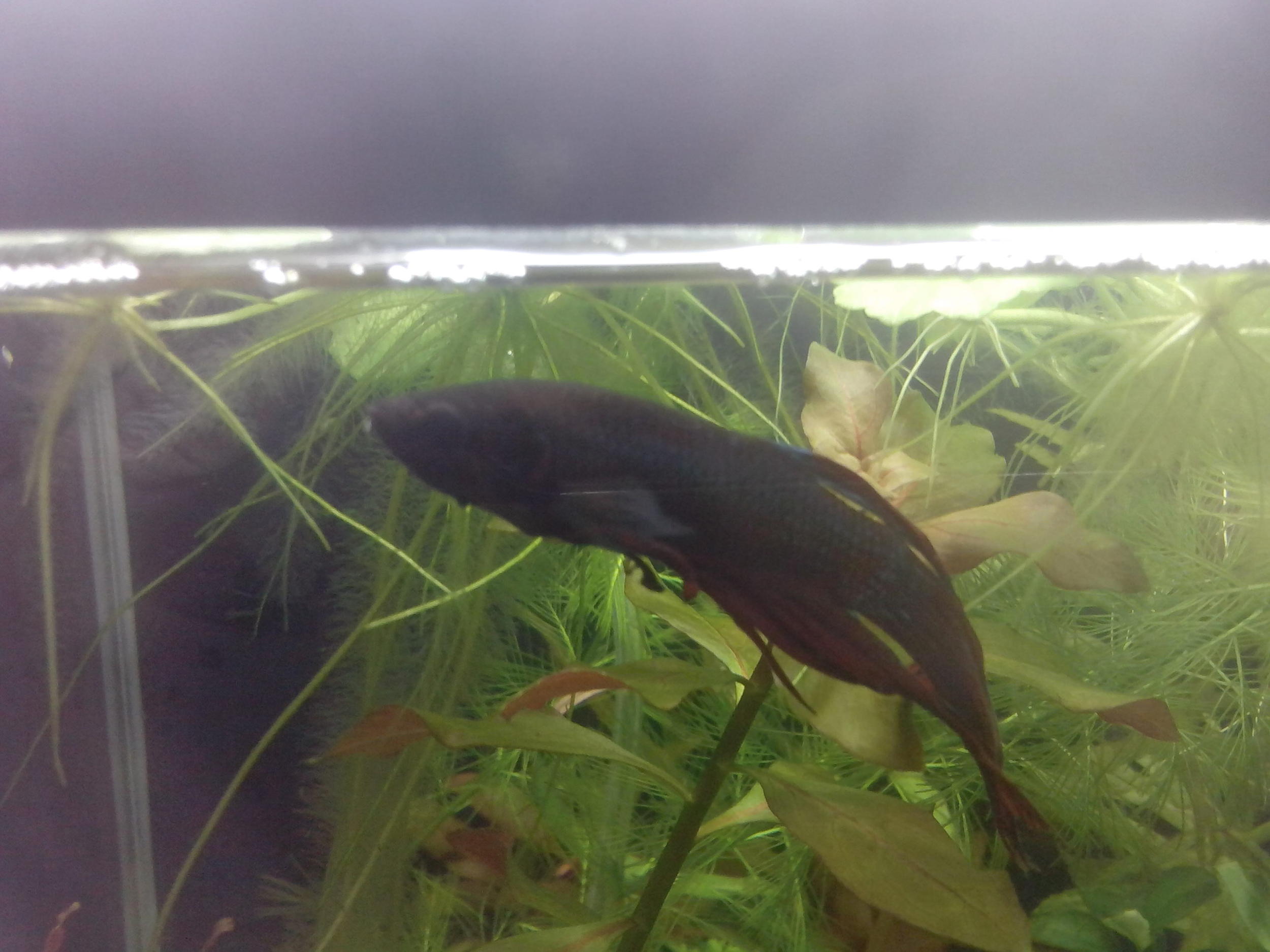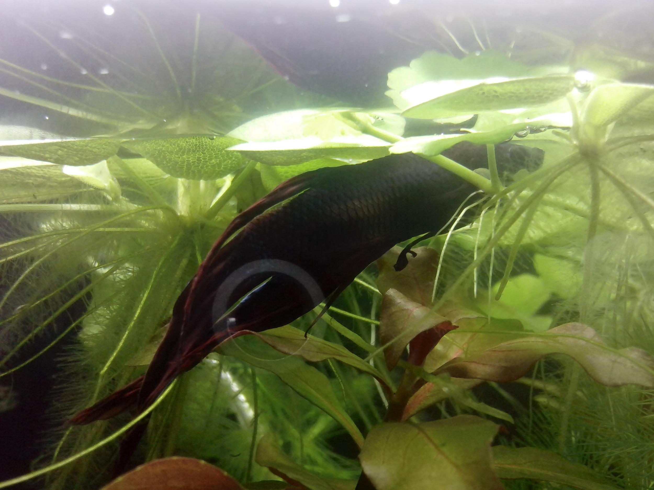 Таке враження що в нього онімів хвіст, тільки вспливає глотнути повітря і зразу тікає на дно ховатись.