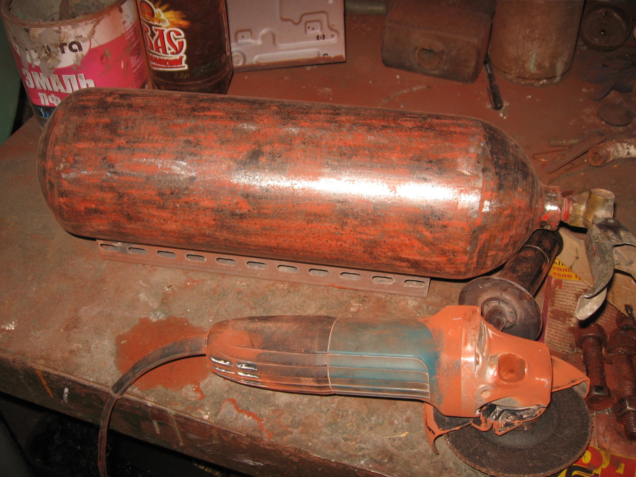 НУ не совсем так-уж, что-бы из мусора.... НА работе взял только совдеповский огнетушитель. Привел в порядок, подготовил к пересадке вентиля. А всё остальное как по накладной :-))