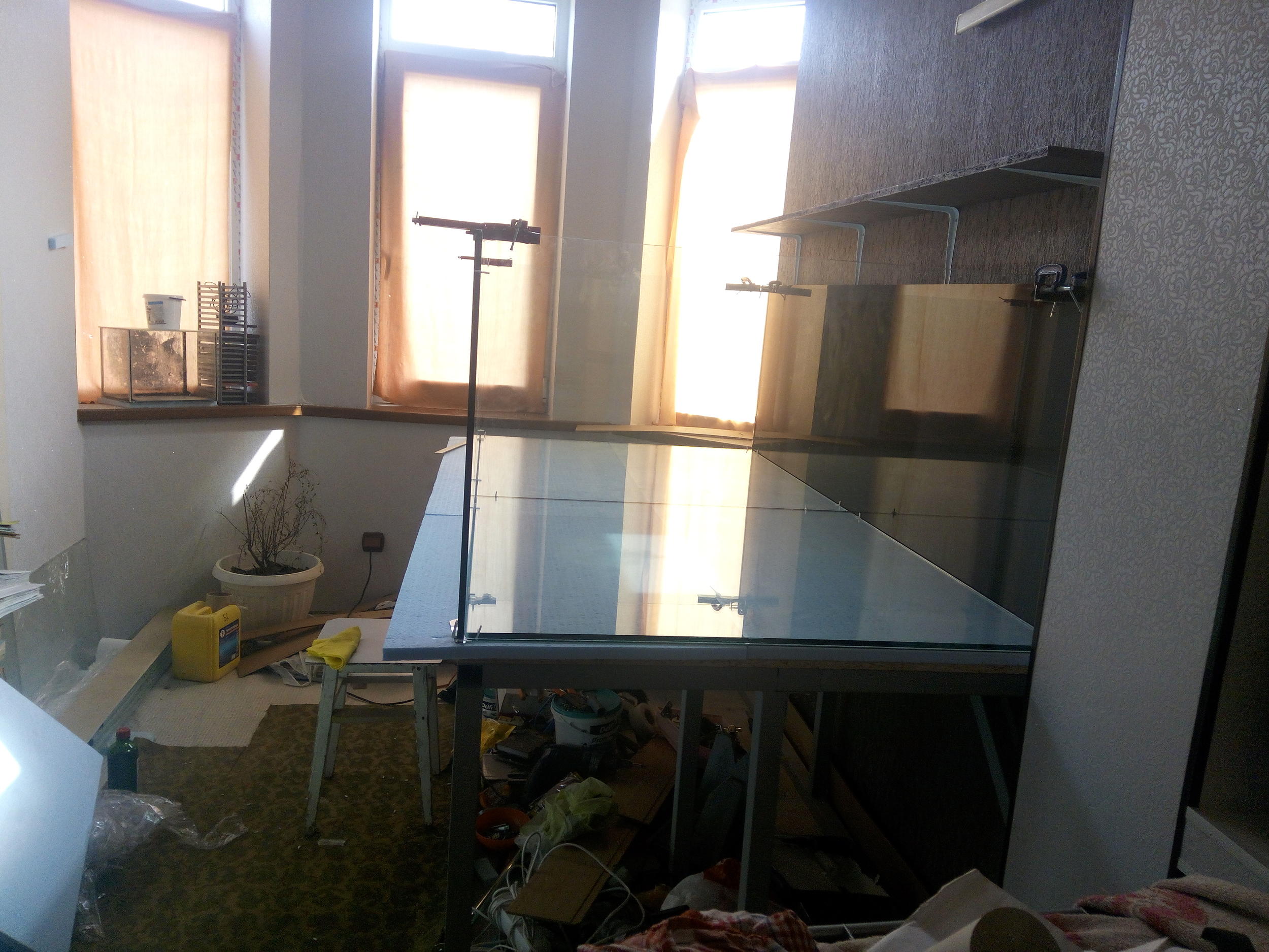 Аквариум достроен и запущен. Фотки выложить не получается, не удаётся загрузить.