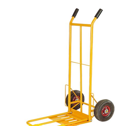 У нас похожая тачка, и когда забирали с 4- го этажа чугунную ванну, 205 кг, предварительно делали поперечную балку из доски с ограничителями (метал), чтоб груз не съезжал.