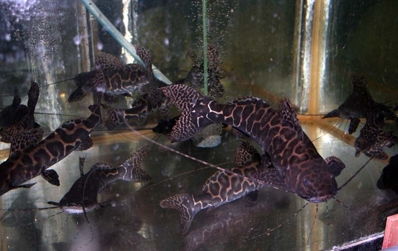 Это крупный, под 70см., сом, типа Фрактоцефала или Псевдоплатистомы. Их в Украину завозили. Были они и у нас в Симферополе, а может и сейчас есть где на выставках.