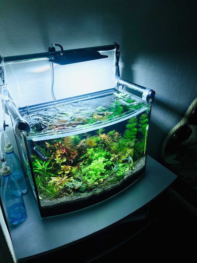 24.03 - население сейчас деяток тернеций, 2 скалярки, пару ампулях, криветки... Из приблут - есть типо фито светильник, Жена что-то какбудто выращивала  Попробовал поставить - ну такое... Вроде цвета чуть насыщеней, но отказался пока от этой забавки...