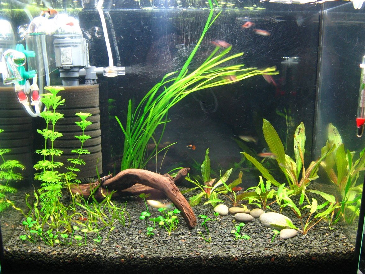 Была веточка рябины. Мне показалось, что СО2 не успевал растворяться. И рыбам не очень нравился такой метод, хватали воздух с поверхности.