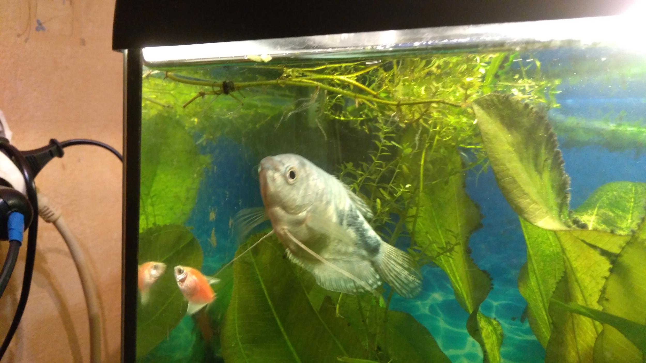 Поведение не изменилось у гурами, ест нормально (даже чересчур!), только нового мелкого гурамчика гоняет.