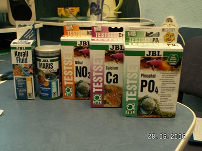 Месяц назад поддавшись на влияние Павлика Морозова начали лить в аквариум водку. Начали с 1 мл и каждый день добавляли по 0,5 мл., догнали до 10 мл. Перед водкой нитрат был 1, фосфат 1. Первые две недели пенник набивал за сутки в два раза больше жижи, а потом количество жижи вернулось на прежний уровень, сделали тесты (до посадки третьей партии животных) нитрат не определяется, фосфат 0,5, наверно всё-таки фонят камни. Хотя если бы не тест можно и не волноваться - состояние аквариума вроде неплохое. Нитчатка коричневая только слегка прёт где слабое течение, приходиться раз в неделю шкрябать её зубной щёткой. Потом водку забросили, сегодня после тестов опять начали лить.