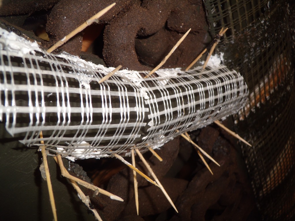 После светильника я сделал задний фон. Импровизацию в виде скульптур из монтажной пены и засиликоненных веревок с трубкамим , метод ,который сплошь и рядом используется для создания в террариуме заднего фона , я откинул.
