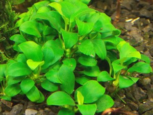 Карликовый анубиас в аквариуме образует небольшие по высоте живописные заросли. Высота куста достигает максимум 5 см, а его ширина *в пределах 5-10 см. листья темно-зеленые. Корневая система сравнительно слаборазвитая. Благодаря своим небольшим размерам это растение является идеальным кандидатом для содержания в нано-аквариумах.Освещение слабое. Разрастаясь анубиас нана-петит формирует густые заросли.