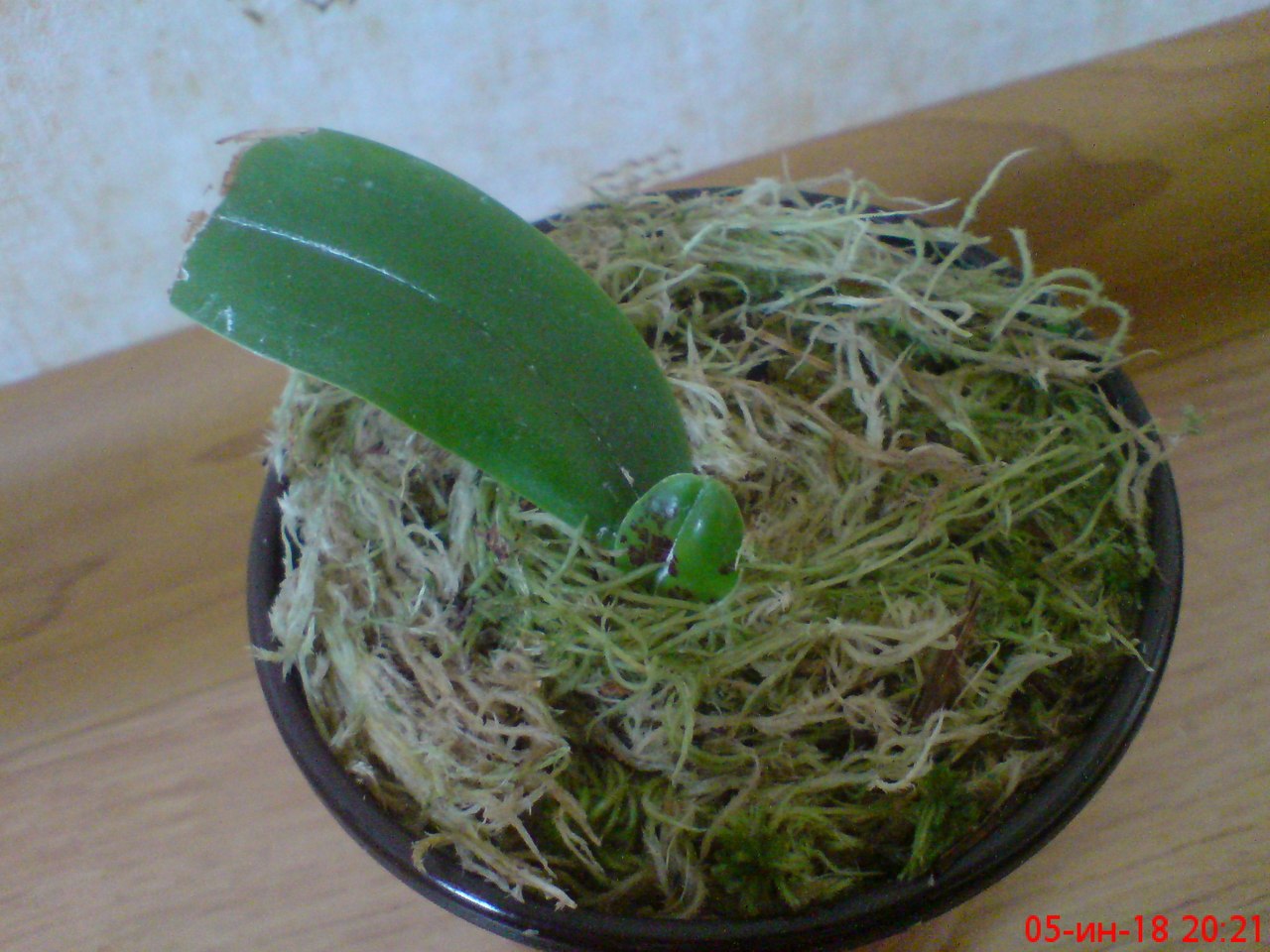 а вот мох который два года был в горшке и в него была посажена детка. видно что он точно такой же как и тот что пролежал год. чуть темнее. но никаких следов разложения . ниже покажу те детки и подростки какие пересаживал