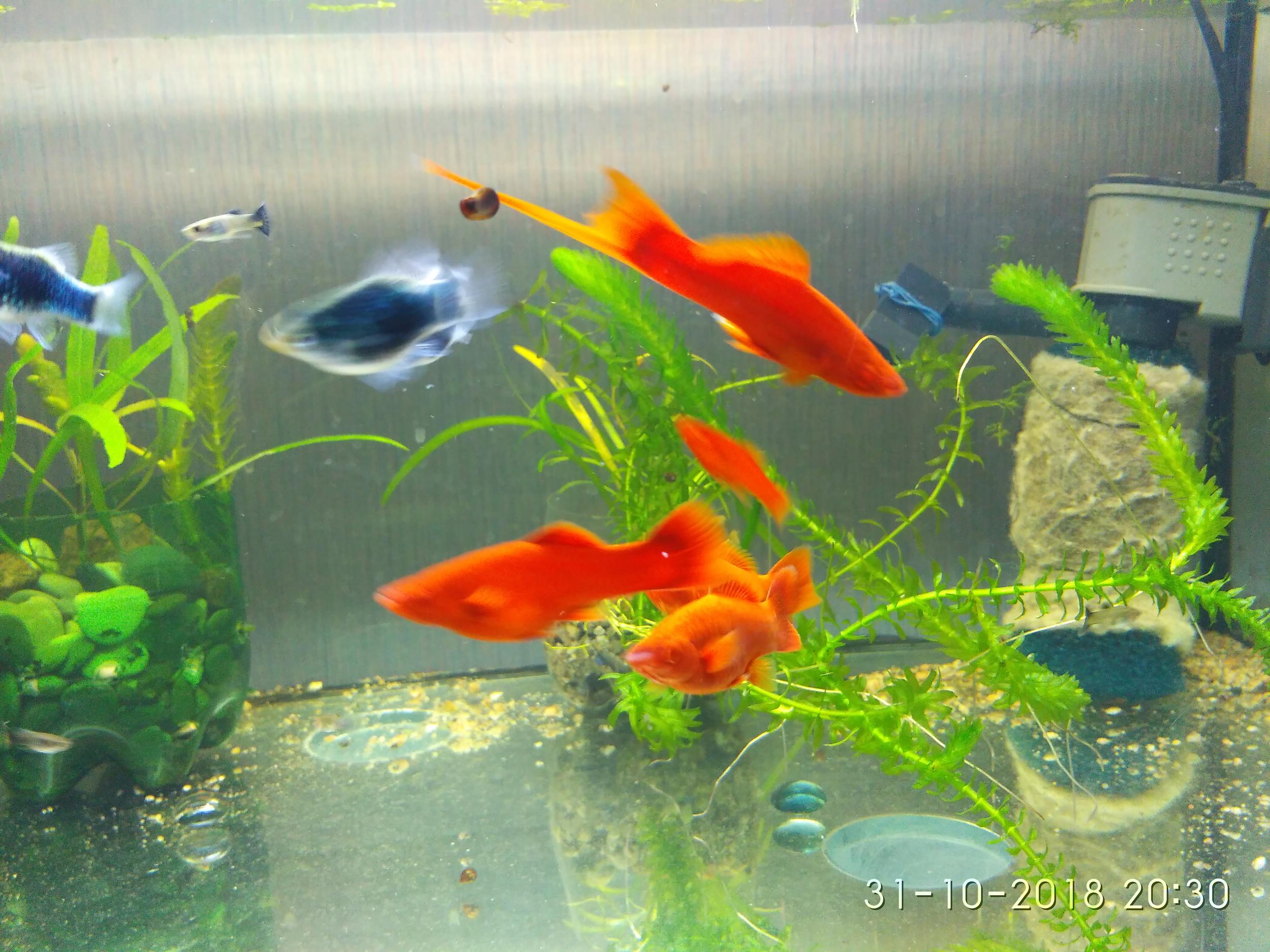 Пецилия Микки Маус, моллинезия снежинка, пецилия blue tuxedo, мечиносцы Санта Клаус и кои санке.