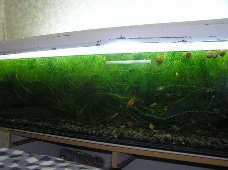 Почему на нем остановилась- человек я очень занятой, и не могу посвятить много времени любимцам.Хороший газообмен благодаря невысокому уровню воды,обильное снабжение воды кислородом растениями создали условия ,исключающие кистование самок, даже при том,что как большинству мне трудно удержаться от добавочной порции "просящим кушать" рыбкам)))