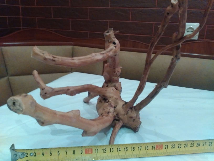 Корчі (коряжки) з коріння винограду, оброблені, почищені, проварені у соляному розчині і вимочені. Готові до занурення в акваріум. Допрацьовуйте за своїми потребами.