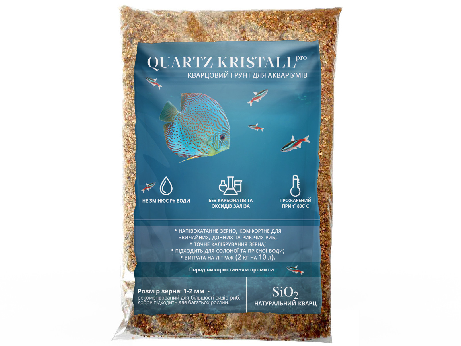 Кварцевый грунт для аквариумов Quartz Kristall, прозрачно-серый желтовато-коричневый оттенок на выбор. Полуокатанное зерно, комфортное для обычных, донных и роющих рыб. Первоклассный материал двух цветов (полупрозрачно-серый и желтовато-коричневый). Широкий выбор фракций. Грунт подходит для соленой и пресной воды.