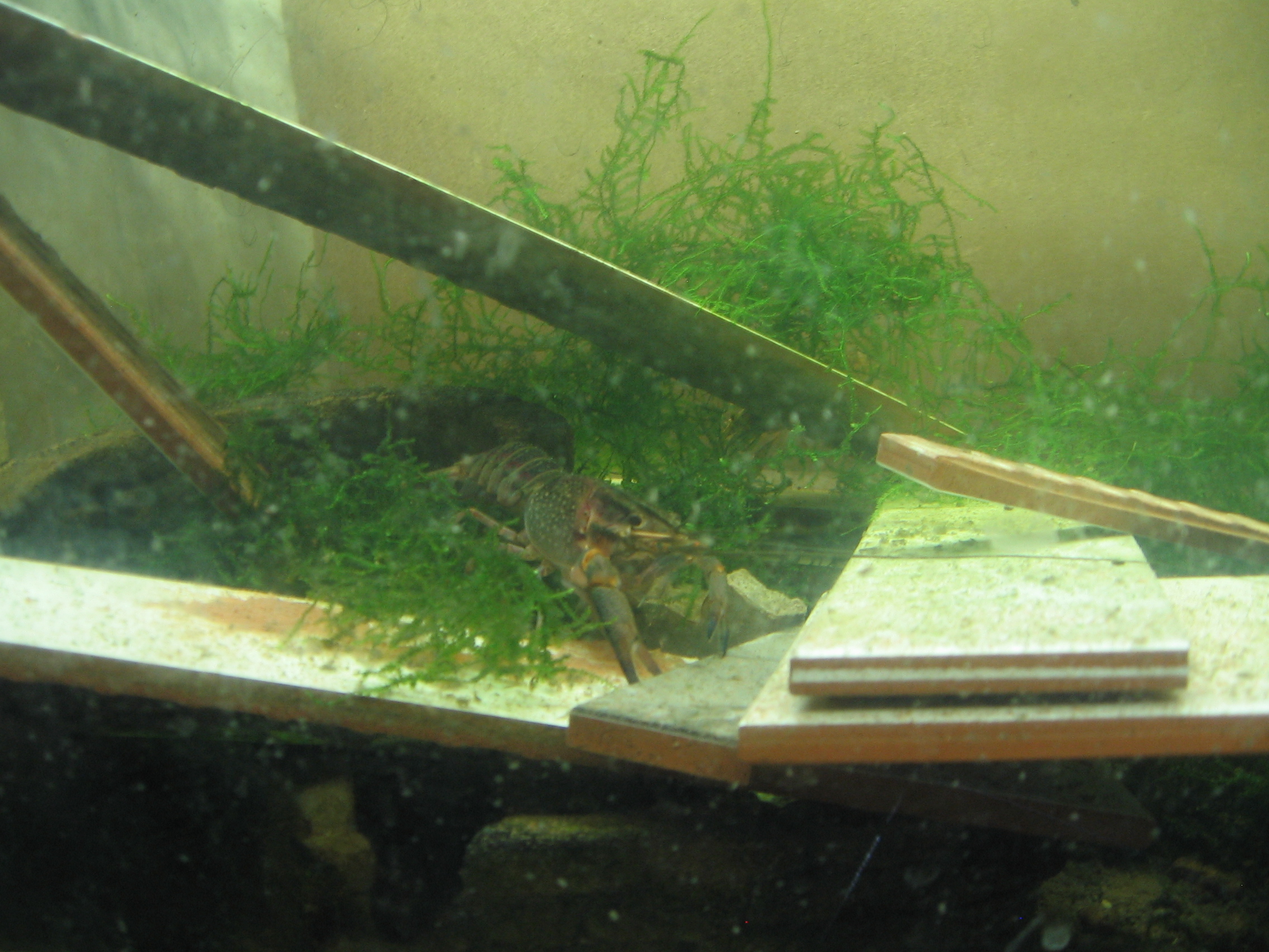 Держу флоридских раков(Procambarus Clarkii).Наверно это наиболее интересный по поведению рак.Яркие(красные,оранжевые,белые,бежевые,кроме природной окраски),среднего размера(до 15см),активны днем,просты в содержании.Недостаток-поедают растения,но растительная пища им необходима.