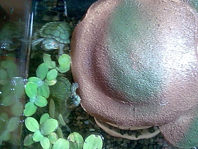 Черепашки маленькие, одна по панцирю около 4см, а другая на 0,5см меньше. И .... я конечно не знаю, но мне так кажеться, что то что есть у них сейчас лучше чем то что было раньше, т.е. маленький бассейн с островком, который продают у нас на птичке и при этом говорят, что кроме этого им ничего не надо ни аквариума, ни обогревателя, ни фильтра.... ничего, что этого им с головой. А в том корыте им приходилось воду менять 2 раза в день - утром и вечером, плавать им было вообще не где, приходилось выпускать на сушу, чтоб они там ходили. Не знаю что Вам и сказать, но могу сказать что "Специалисты" у нас на птичке .... им абы продать и все ... и ничего больше не волнует, хотя мы и там спрашивали, что может надо что то большее и есл инадо .. то мы купим, чтоб дали то что им необходимо для того чтоб они не погибли .... вот такая вот история. А теперь я даже и не знаю что делать...это что надо все менять?!