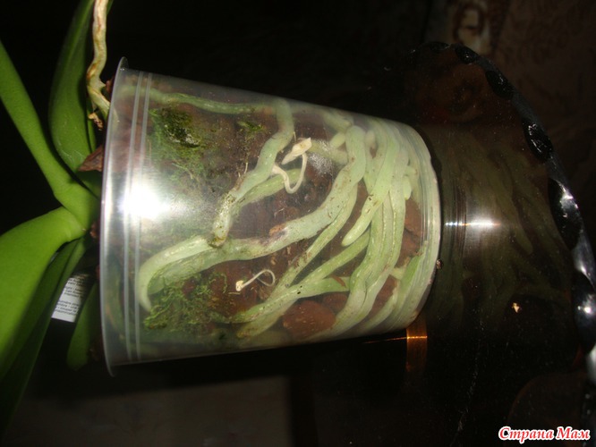«Старый» субстрат уже свое отработал, и не пригоден для дальнейшего выращивания в нем орхидеи. Производители мох и кокосовый субстрат кладут не для того, чтобы ваша орхидея пропала, а потому что они садят в это деток, понимая, что расти в чистой коре они не могут. Потом с этим переваливают в горшки для продажи. Не убирают его или подкладывают мох потому что понимают нельзя после кокосового стаканчика или мха сажать фаленопсис сразу в кору потому что они погибают от этого. НИЧЕГО ОБЩЕГО НИ С КАКОЙ ТРАНСПОРТИРОВКОЙ ЭТО НЕ ИМЕЕТ!! Вот поэтому их и надо сразу пересаживать, принеся домой. Производители делают все правильно и на 200% знают, что нужно делать. Не нужно изображать из себя умнее профессионалов-производителей, которые годами занимаются этим. СТАКАНЧИК С КОКОСОВЫМ СУБСТРАТОМ, МОХ ОБЯЗАТЕЛЬНО УБИРАТЬ!!