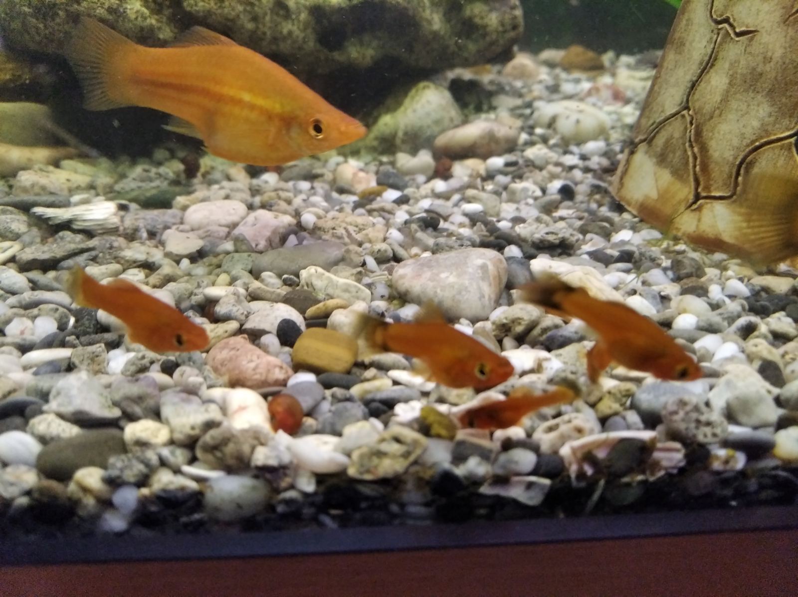 25.05.2021г. снова пополнение, самочка родила более 100 маленьких меченосцев)