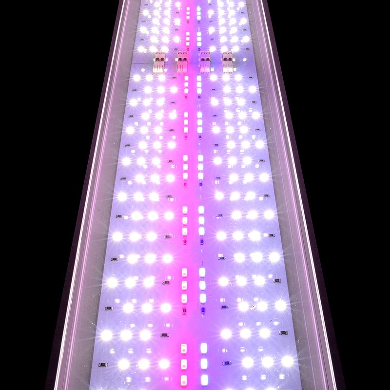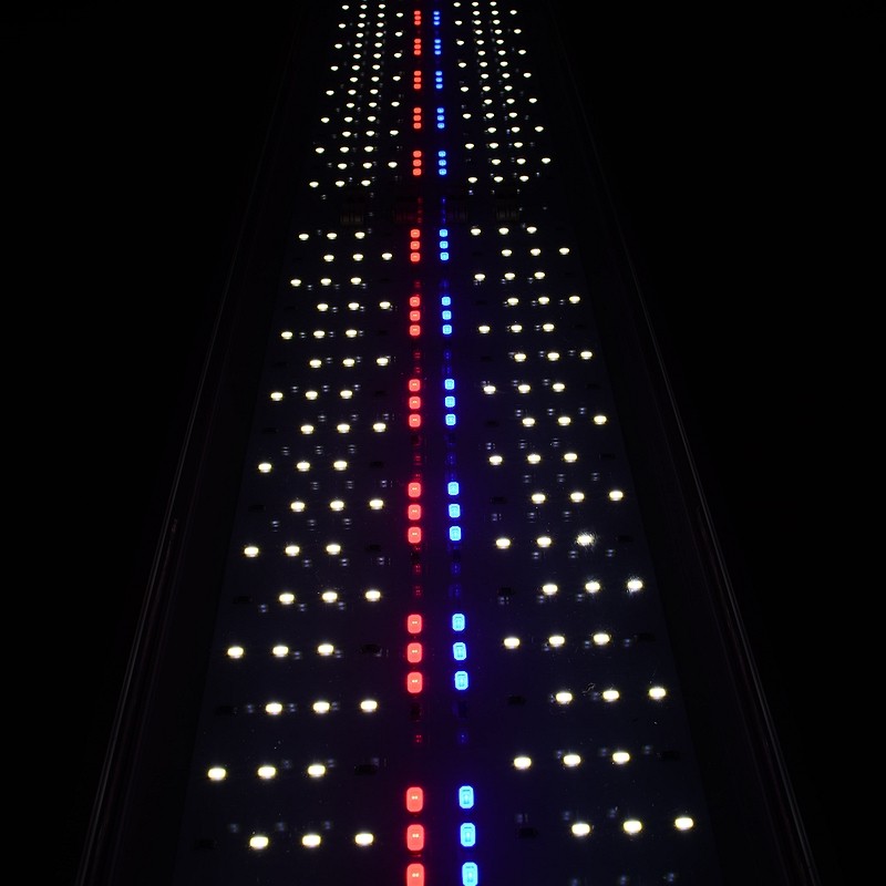 ♦ Завдяки наявності двох білих каналів, можна моделювати світло в акваріумі, посилюючи чи послаблюючи освітленість передньої або задньої частини акваріума, тим самим досягати максимального ефекту для рослин переднього або заднього планів.