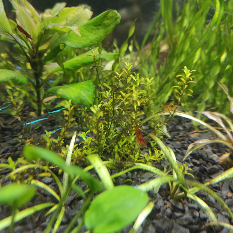 Так вот, креветки креветками, но если вернутся к изменению света ( то что я поменял 1 обычную лампу на 2 светодиодных прожектора) это принесло свои плюсы и минусы. Плюсы это то что по моему мнению свет растениям нравится, и мне приятнее когда всё ярко и чисто смотрится. Минусы , не скрою , предсказуемы, появились водоросли такие как ,,бурые,, но только на 1 виде растений Хемиантус (микрантемум) микрантемоидес, появился олений рог и нитчатые (от них сейчас страдает мох на коряжке).