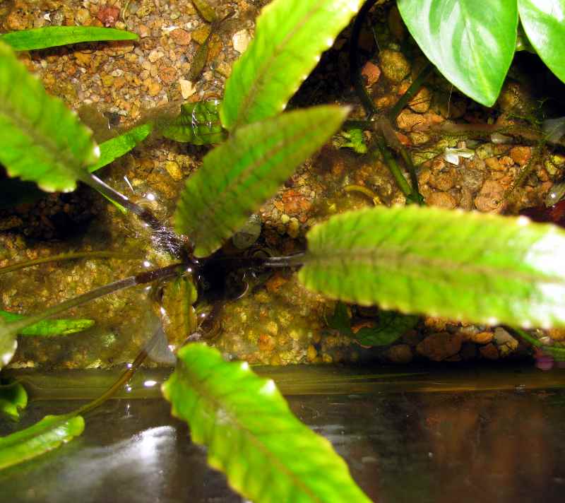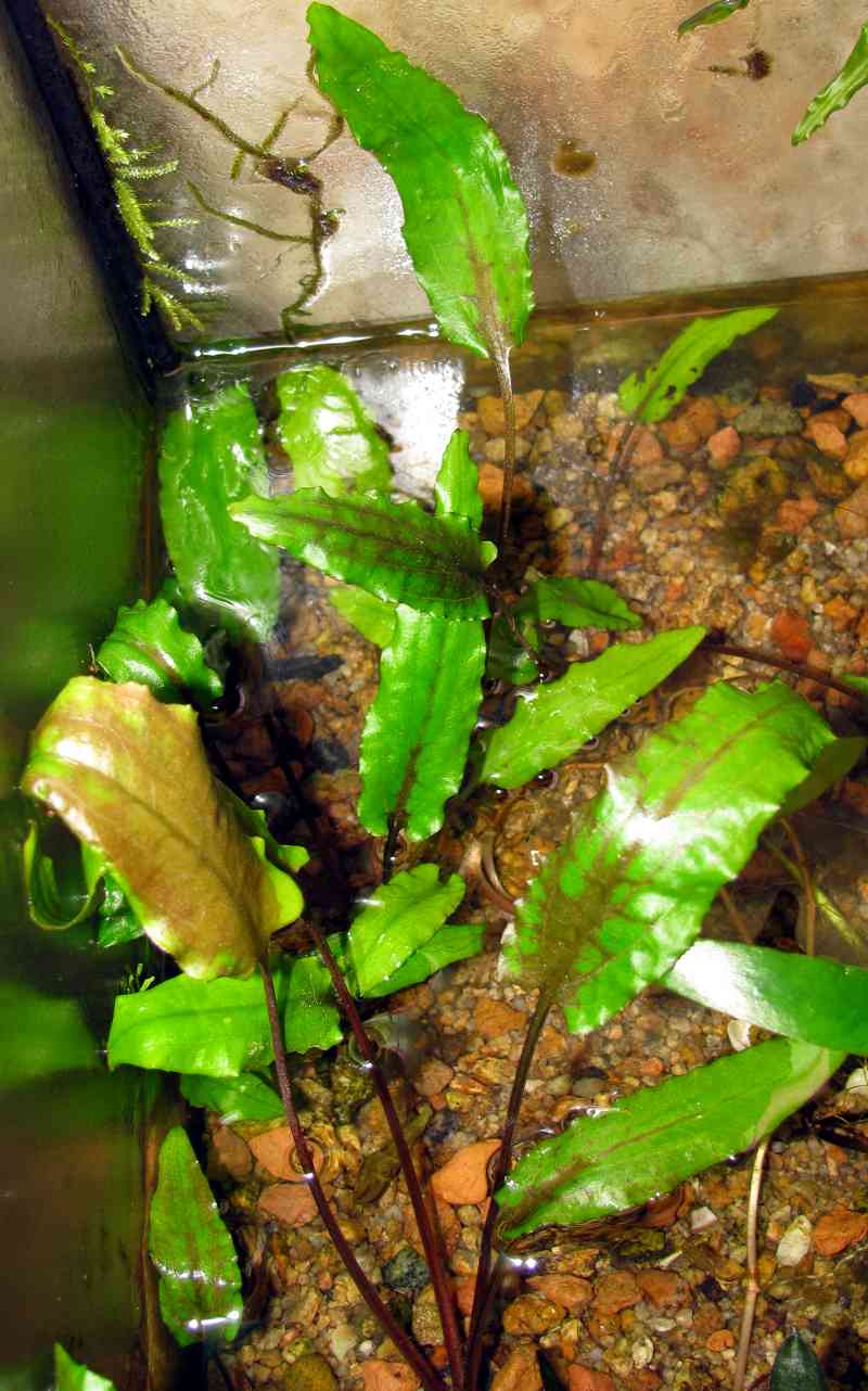Cryptocoryne x willisii. Данное растение я культивирую довольно давно, не прихотливая крипта, у меня успешно живет как в погруженном состоянии, так и в палюдариуме. Параметры среды следующие:
