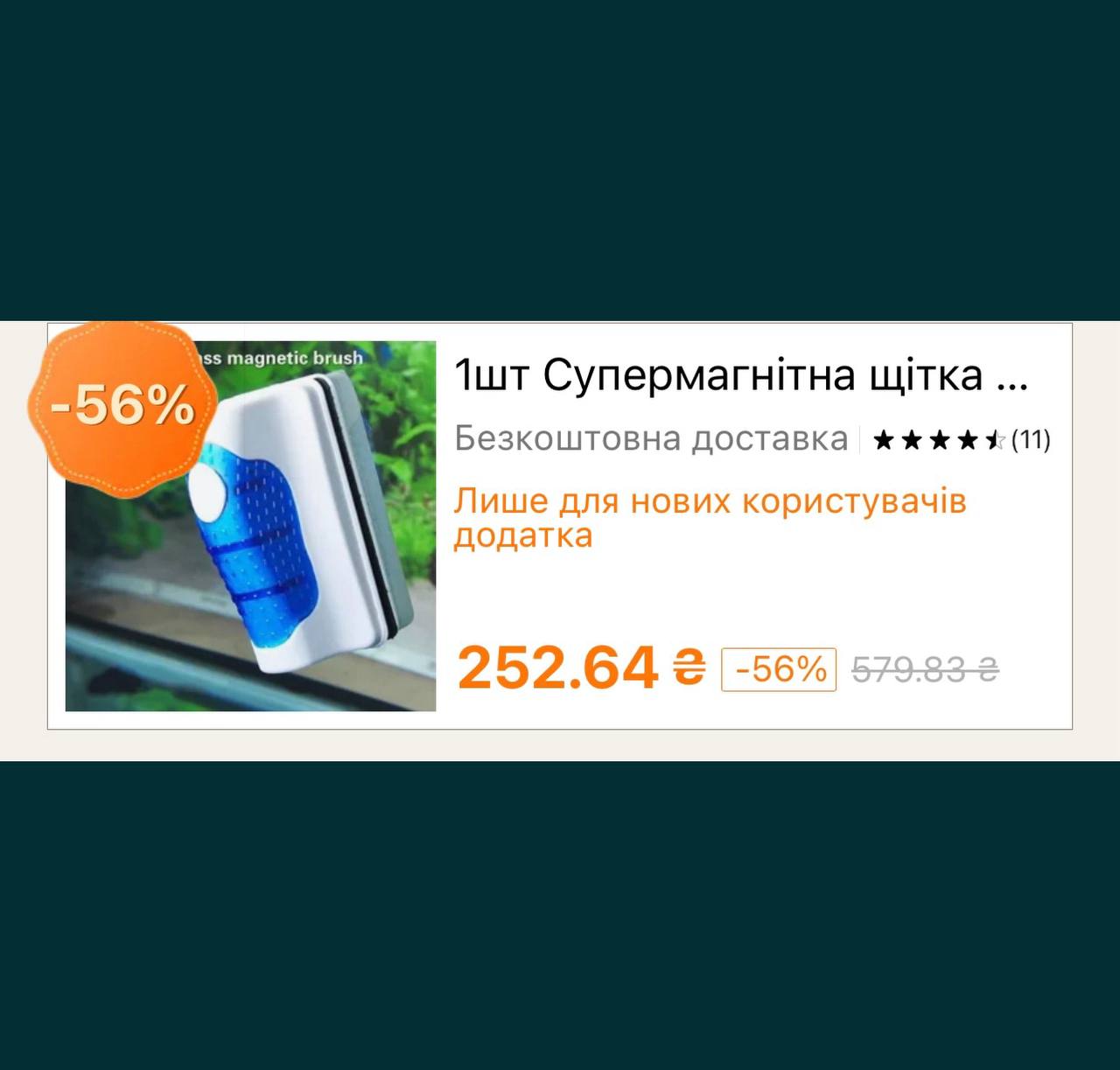 Подходит для аквариумов с большой толщиной стекол, так как на скребке установлены очень сильные (мощные) магниты для хорошей адгезии.