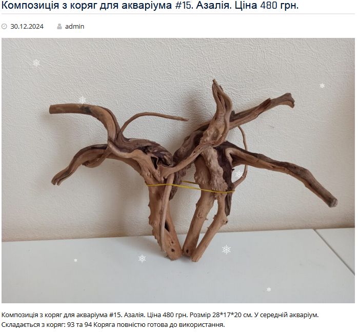 Є у наявності більше 100 коряг та композицій різної форми та розмірів!