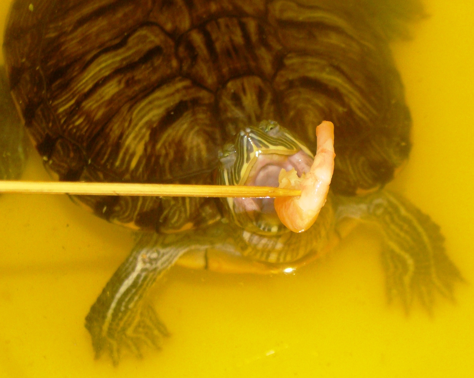 А это мои Жужа (болотная) и Туся (красноушка). Живут все вместе, пока не конфликтуют! Спят друг на дружке, а вот кормлю отдельно всех по очереди, в тазике!