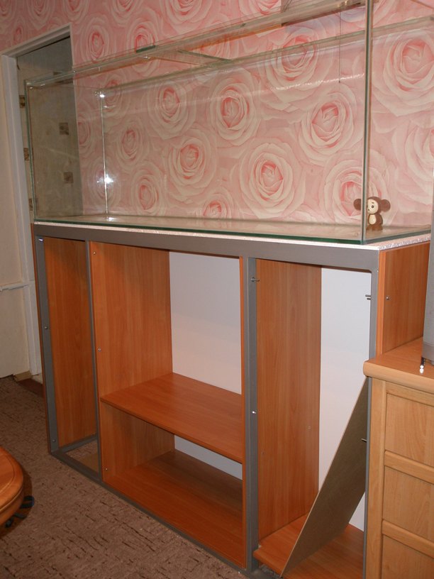 с этим к стати связана и высота тумбы. ранее мне было выделено место в углу комнаты над длинной батареей, а потом (после заказа каркаса) было сказано, что не возможно сидеть за компом с аквариумом за спиной... ну да ладно - переехали в зал. ох уж эти мужчины...