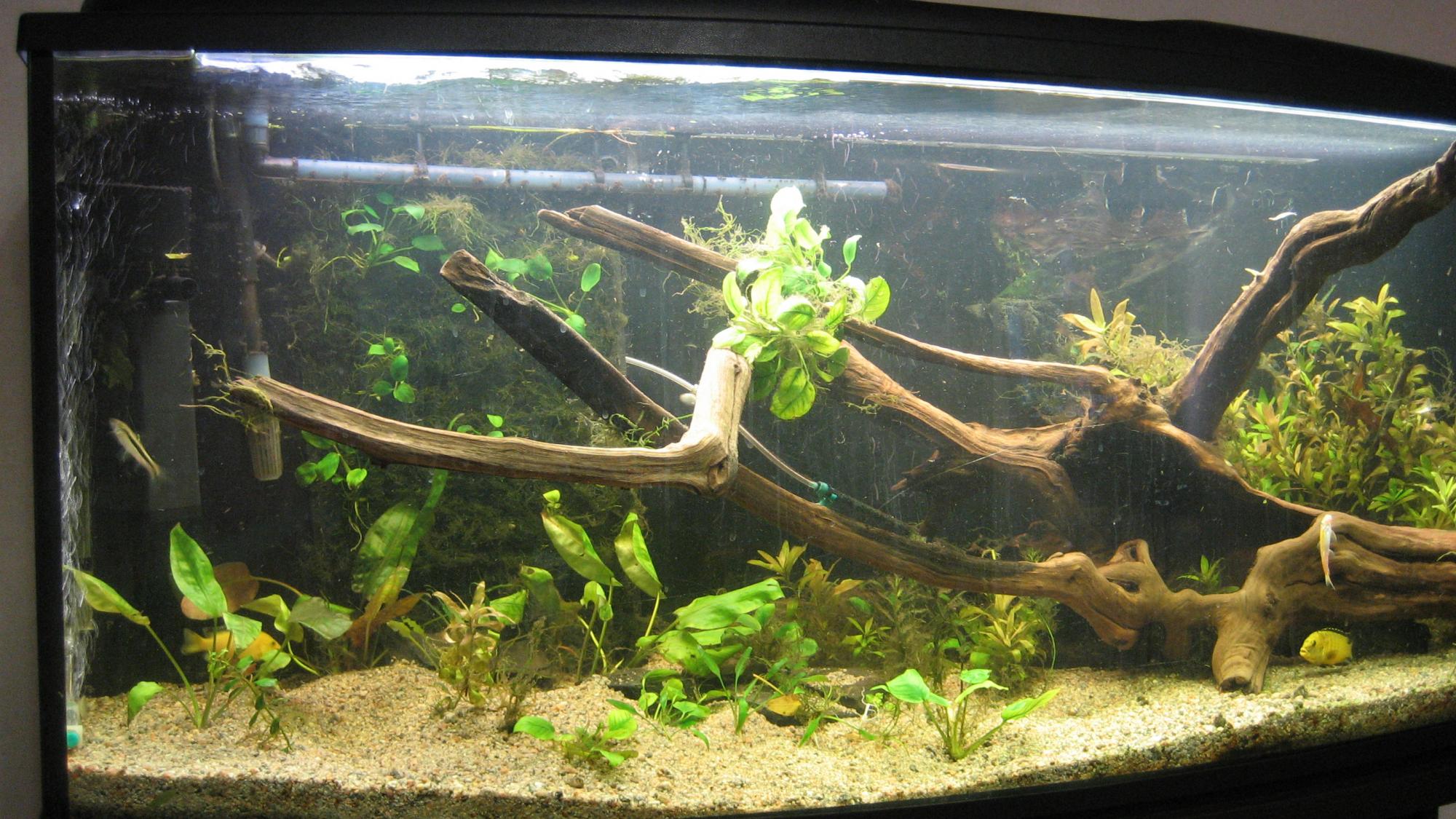 Нижний край прикопал грунтом, верхний край удачно закрепился за флейту. Тут походу анубиас под руку попался-я его и примотал к сетке. вроде зелено. Супруга тоже одобрила, говорит визуально добавило в акве глубину.
