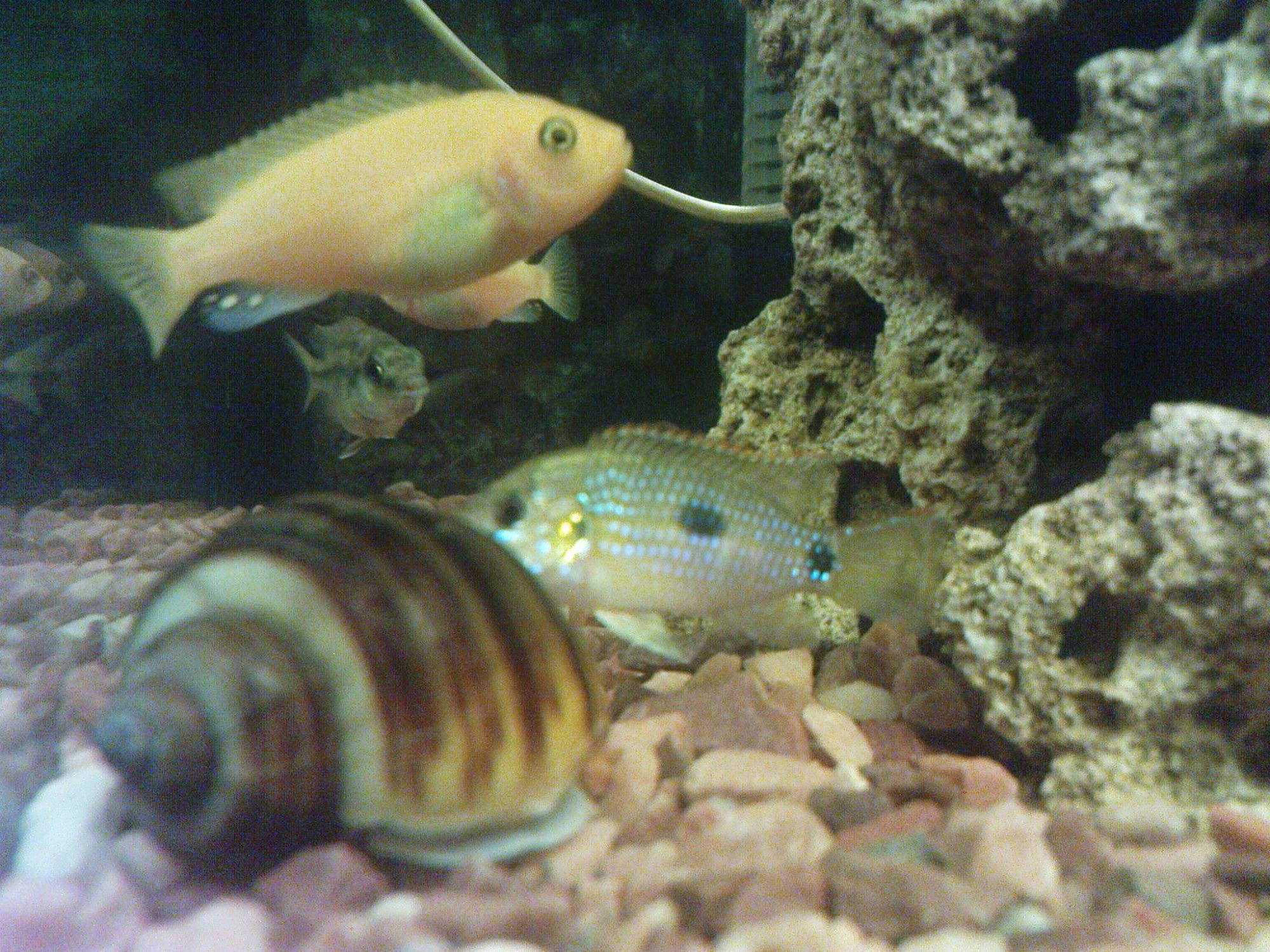 Fancy, у меня там, если я правильно определила - 4 зебры, пара Pelvicachromis pulcher, 2 цихлазомы Меека и 2 как выяснилось - Pelmatochromis thomasi .... Вроде как все Малавийци... если ошибаюсь - поправте