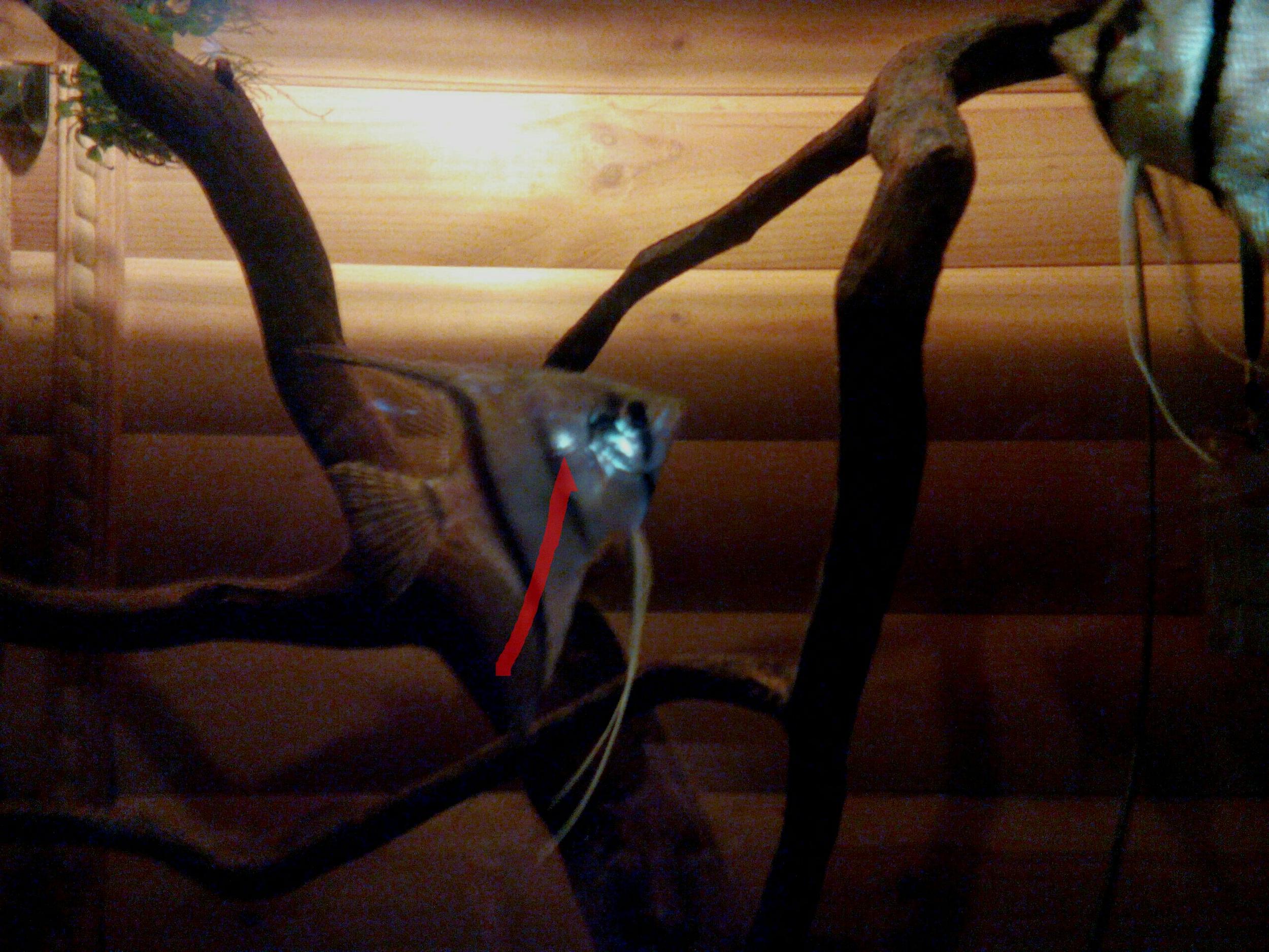 Только у одной , прыщ выскочил на теле- за жабрами . ( на фото , он после обработки). То есть на мясистой части тела. Тут прыщ пошёл в рост! Преобразовался в папилу. И тут он самый устойчивый. Но эта рыба, на удивление , самая активная! Папила не покрывается грибком, как это часто бывает с ранами у рыбы в простой, водопроводной воде! Значит мягкая вода и кислая среда делает своё дело.
