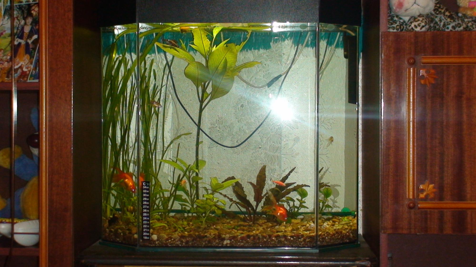 1. Уберите вуалехвостов, они много гадят, а потом подрастут и просто сожрут ваши растения (лучше заведите харациновых или живородку).