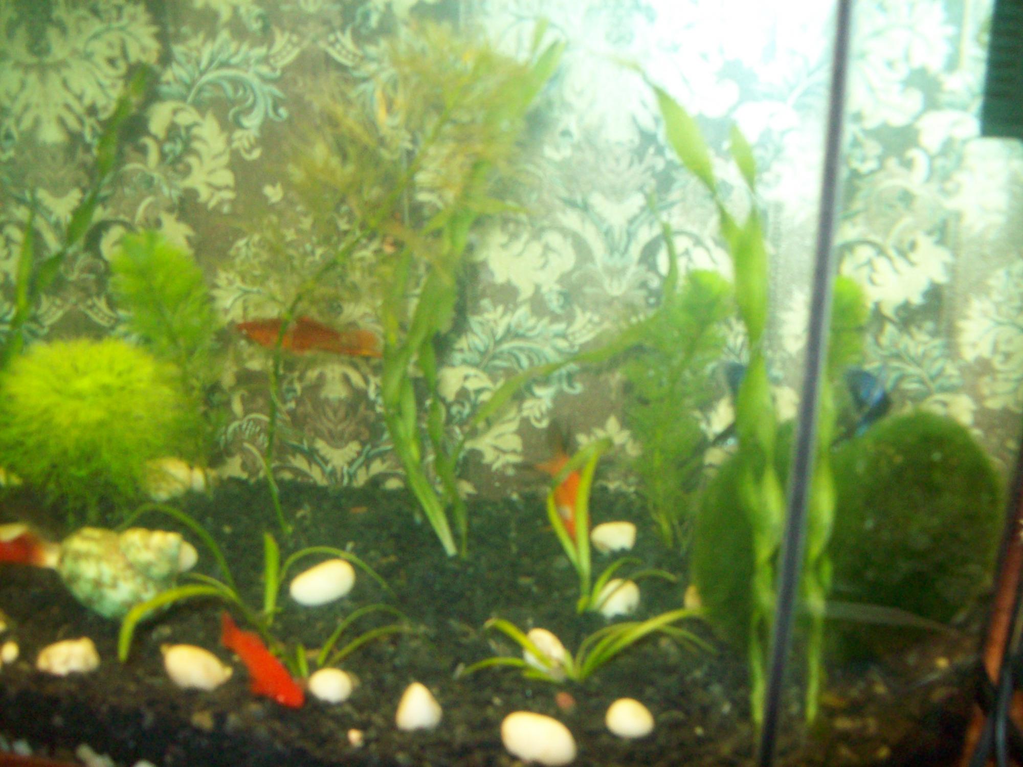Обязательно наклейте фон. Сами удивитесь как изменится аквариум.