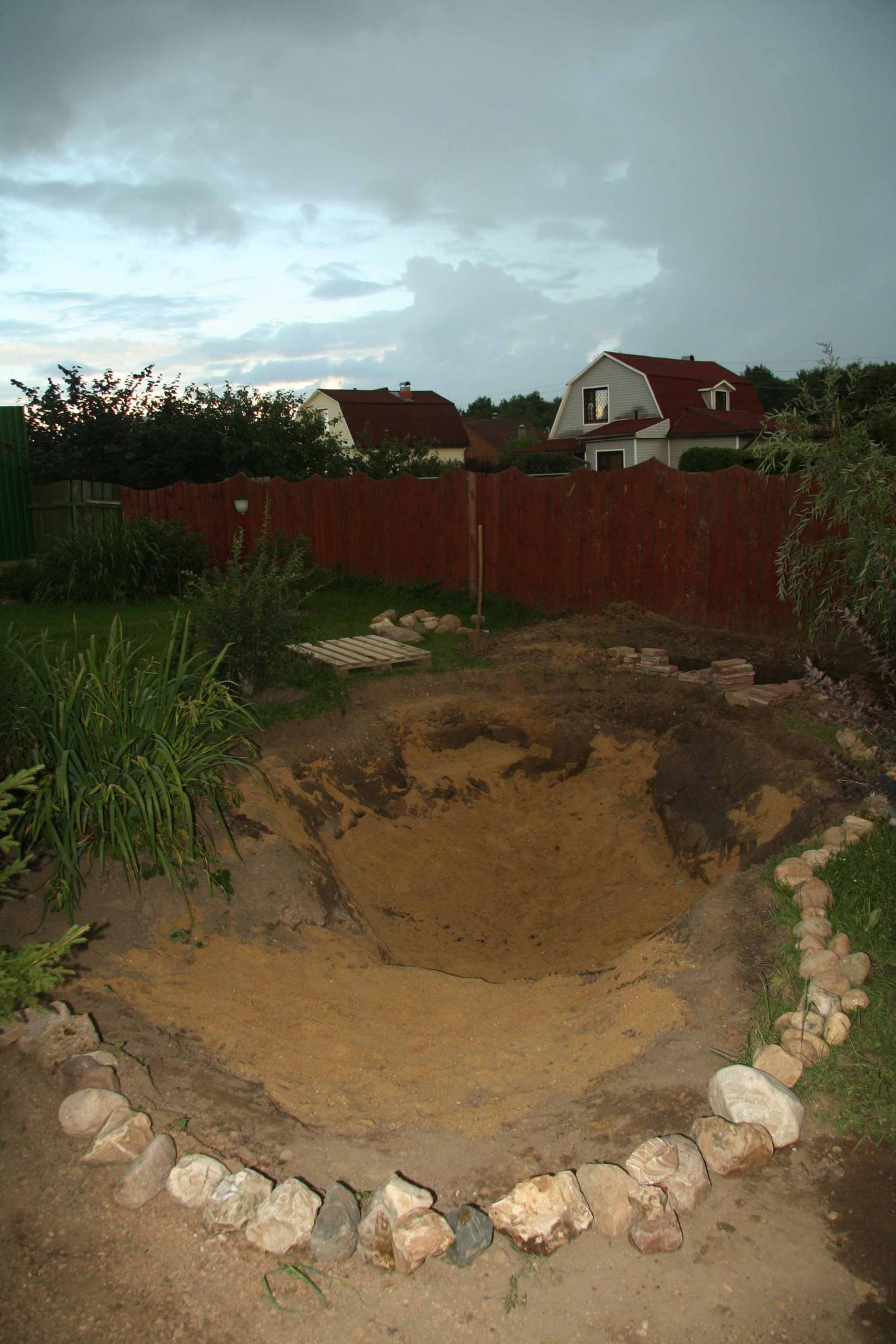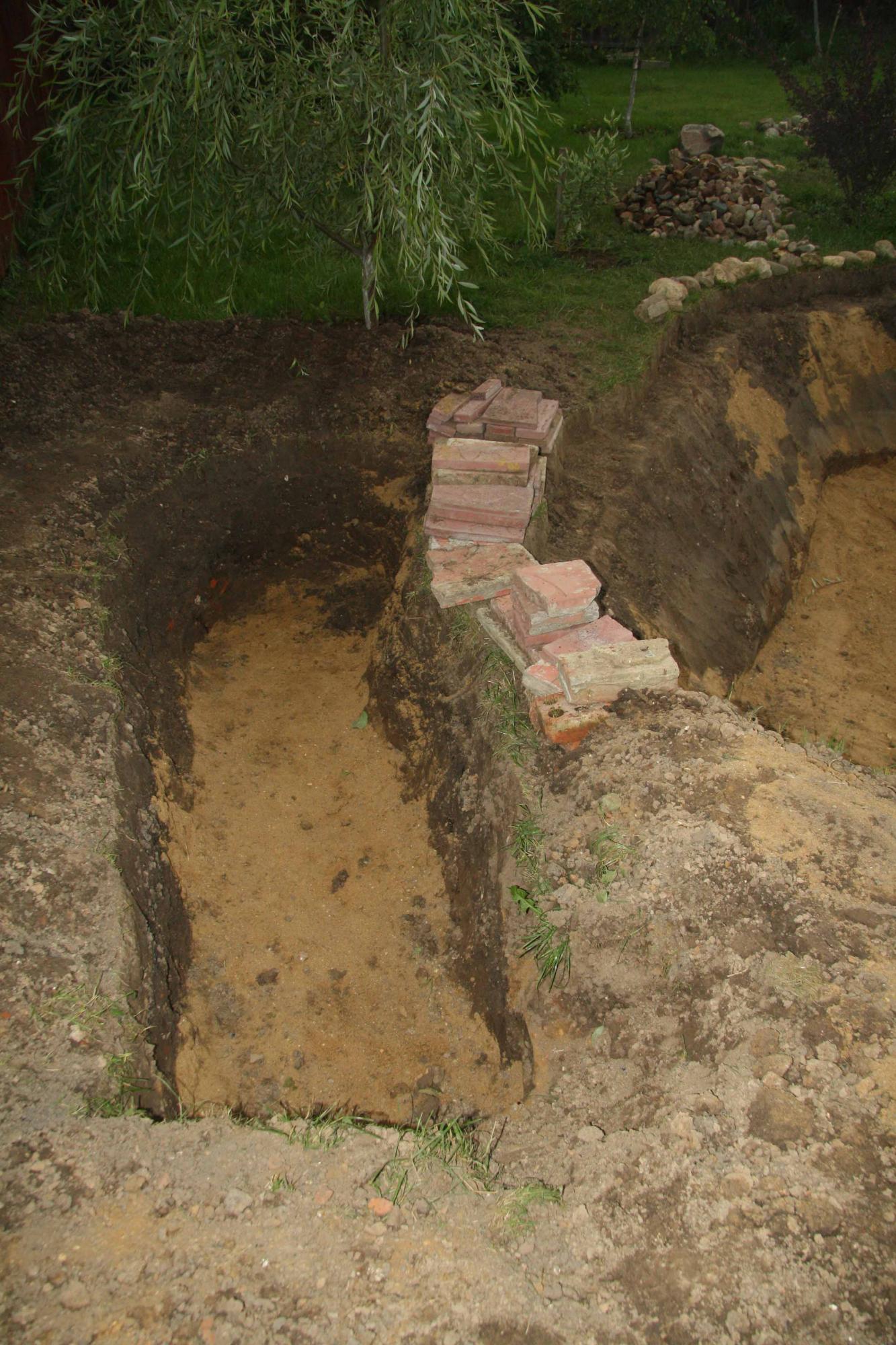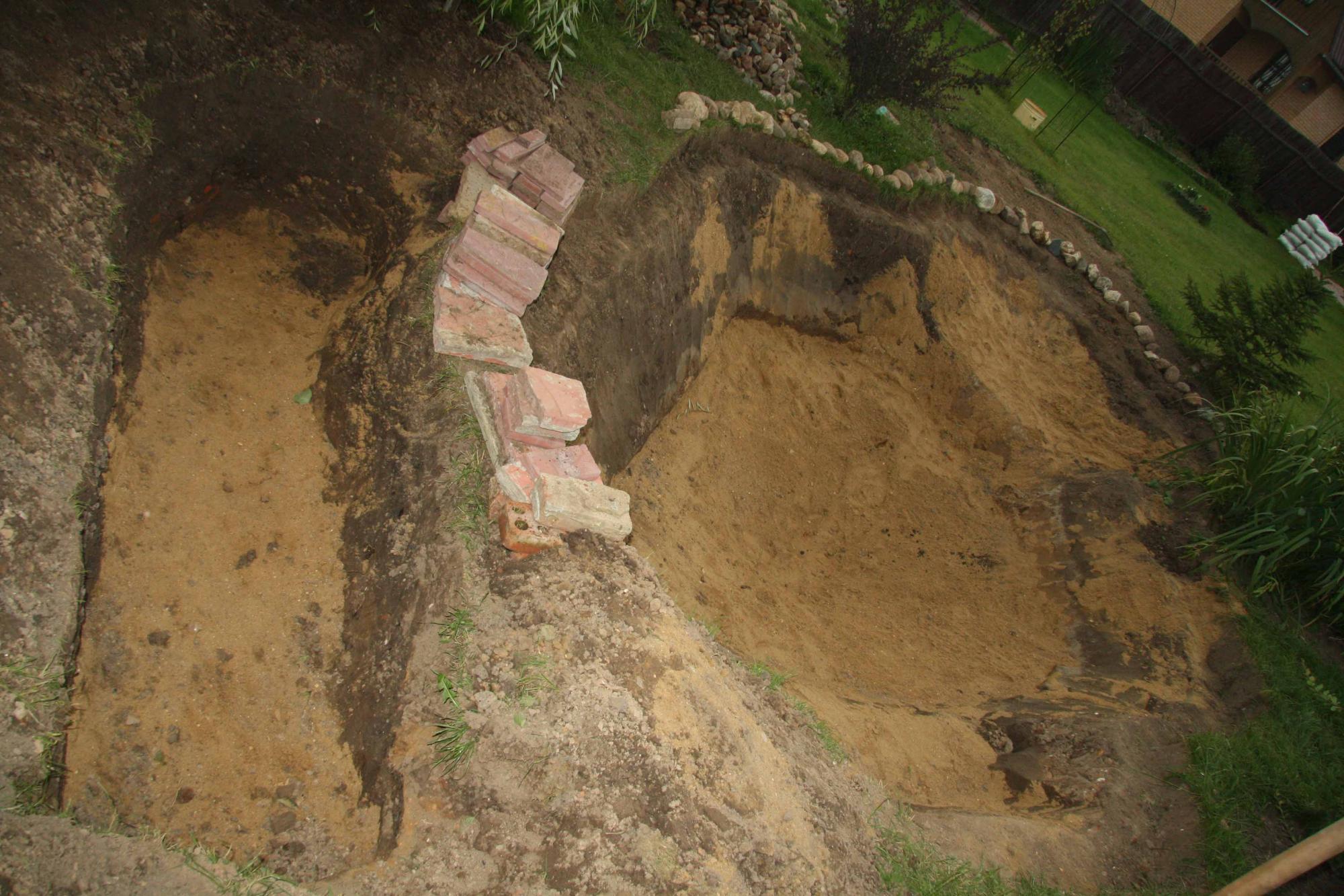 еще хотел сделать небольшой ручей из гранитного и мраморного камня который выкопали в этой яме. его разместить около ели. Т.О. очищеная вода будет поступать из ручья на мелководную зону а забираться на очистку в дальнем углу глубоководной зоны. мне кажется удастся добиться хоть какого-то движения водных масс, и избежать застоя. что скажите други?
