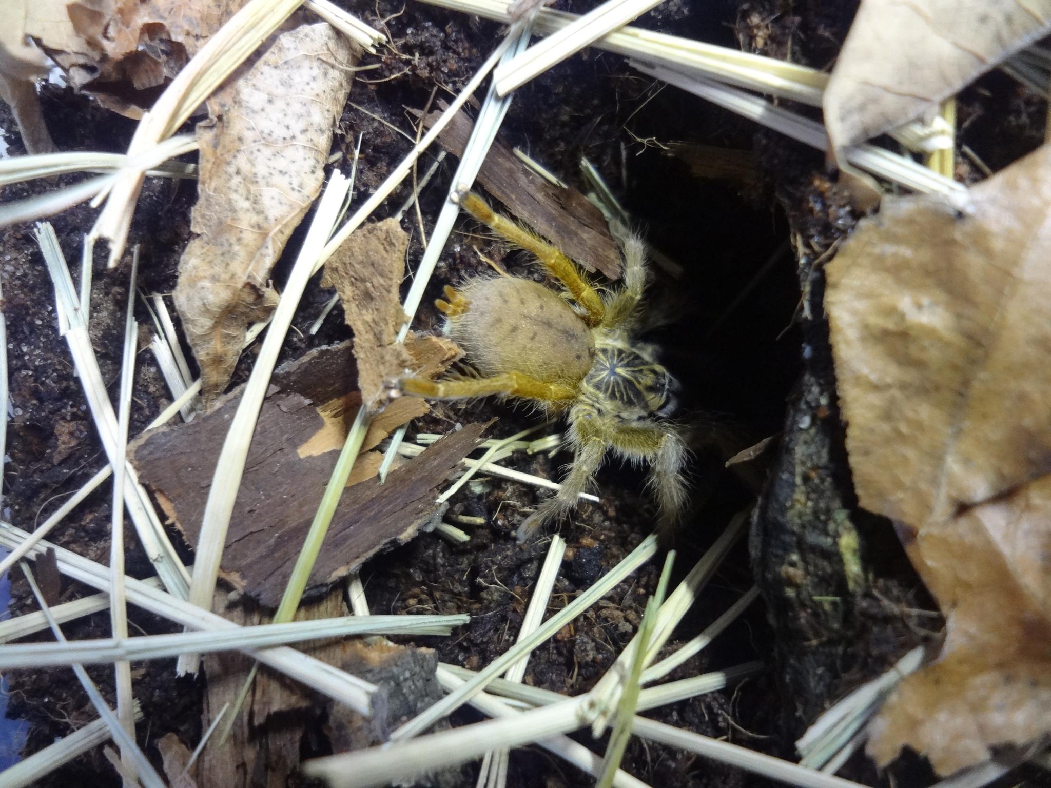 По поведению - вид довольно пуглив. Казалось бы, это же ближайшие родственники Ceratogyrus'ов, которые известны своими "оборонительными навыками" даже с малых линек. Однако, как от малышей, так и от ювенильных особей я ни разу не видел защитной стойки. Оказавшись в незнакомом месте, к примеру, на открытом полу, будет бежать, пока не найдет укромное место, по типу щели или чего-то подобного. При вмешательстве на уже обжитую пауком территорию сразу же прячется в свою нору. Особи этого вида довольно часто выходят "погулять" на некоторое расстояние от своей норы. Если потревожить паука в этот момент, он будет судорожно метаться из стороны в сторону в поисках входа в эту самую нору, однако, находит он вход не сразу, а иногда, вообще не находит, выглядит это достаточно забавно.