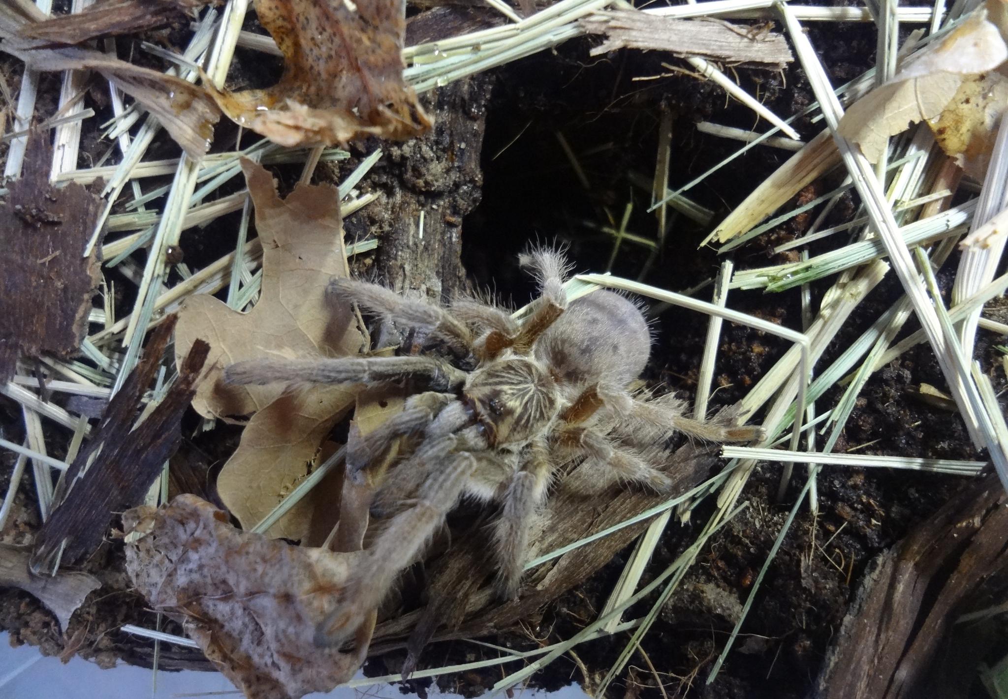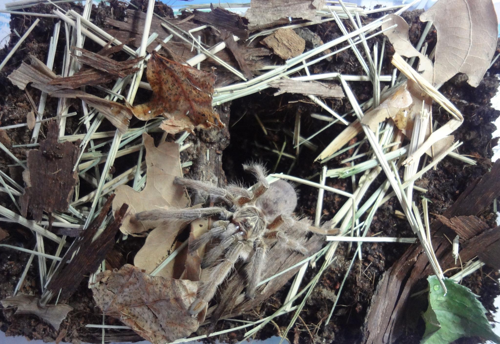 По обустройству жилища весь род Augacephalus схож с родом Ceratogyrus. При наличии большого слоя грунта роют норы как малыши, так и более взрослые особи. Изнутри норы густо оплетены плотным слоем паутины. Если же слой грунта недостаточный для построения норы, то паукам стоит обязательно положить укрытие. Своим ювенильным особям я приготовил грунтосмесь из кокосового субстрата, глины и песка. Сверху положил кусочек коры, предварительно подкопав под ним некое подобие норы и присыпал всё сухостоем и листовым опадом. Всё это можно видеть на фото ниже. После заселения прошло уже больше двух месяцев и чуть позже я дополню тему новыми фото обустройства норы.