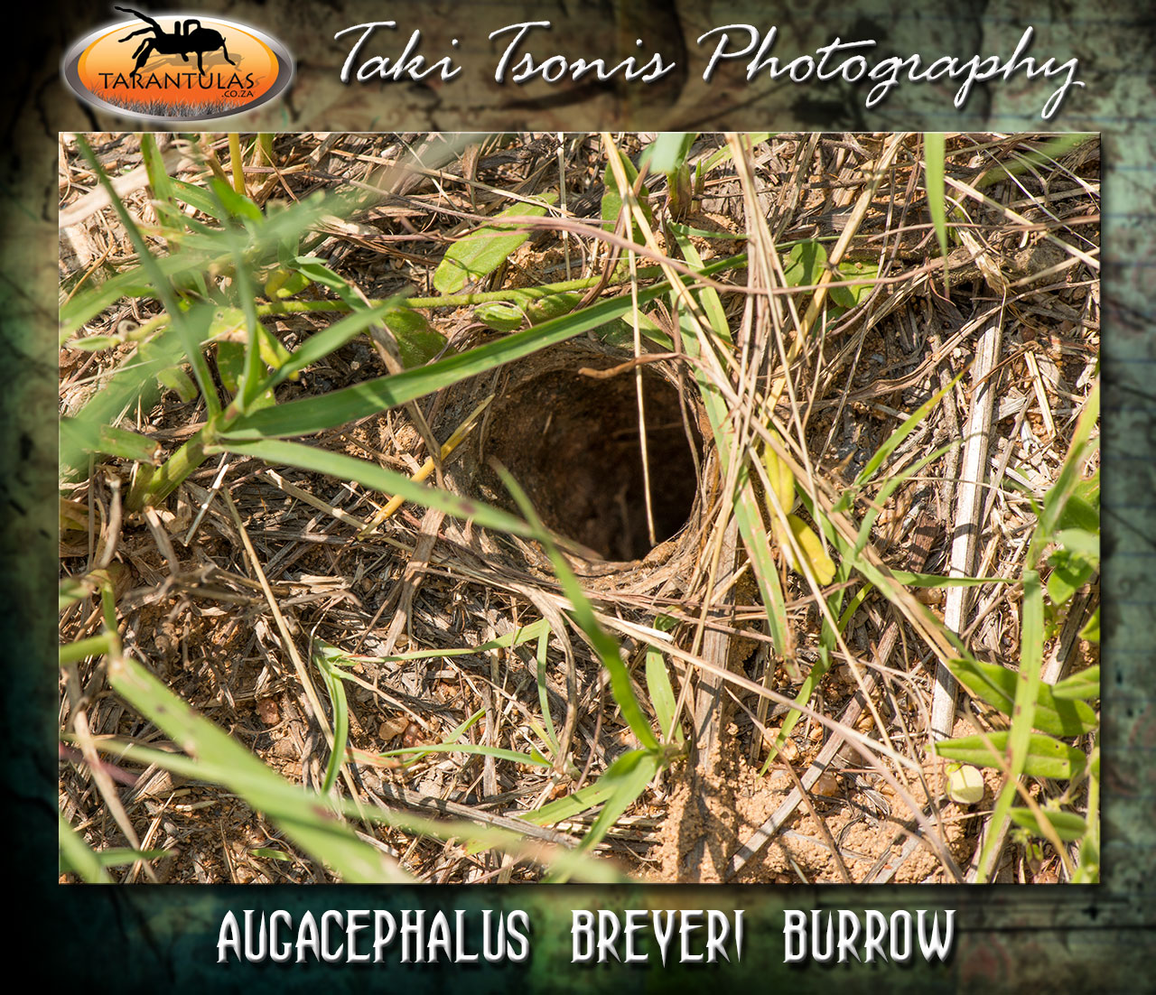 Augacephalus junodi (Simon, 1904) - исходя из информации, представленной в научных работах, это самый крупный представитель рода, вырастает до 13-15 см в размахе лап. У этого вида самая большая разница между размерами взрослых самок и самцов. Средний размер самки 5-6 см по телу, в то время как самцы вырастают до смешных 1,5 см по телу. Вид населяет преимущественно юго-восточную часть ЮАР, провинцию Лимпопо, провинция Мпумаланга и другие. Средняя высота, на которой проживает этот вид - 1400 метров над уровнем моря. Селиться предпочитают на открытых лугах или пастбищах (фото 6, 7, 8). Малыши данного вида после выхода из кокона обычно обживаются где-то неподалеку, вследствие чего образуются некое "оккупирование территории", когда на небольшой площади можно встретить много нор в непосредственной близости друг от друга. Проживает в самых суровых климатических условиях. Температура зимними ночами может опускаться до 7-8 градусов, днем прогревается до 18-19 градусов. С осадками дела обстоят так же туго, за три зимних месяца может быть всего 1 дождливый день. Летом температура 20-22 градуса ночью и 25-27 днем. В среднем, летом бывает 20-25 дождливых дней в месяц. В хобби вид распространен слабо, но всё же периодически всплывает в продажах.