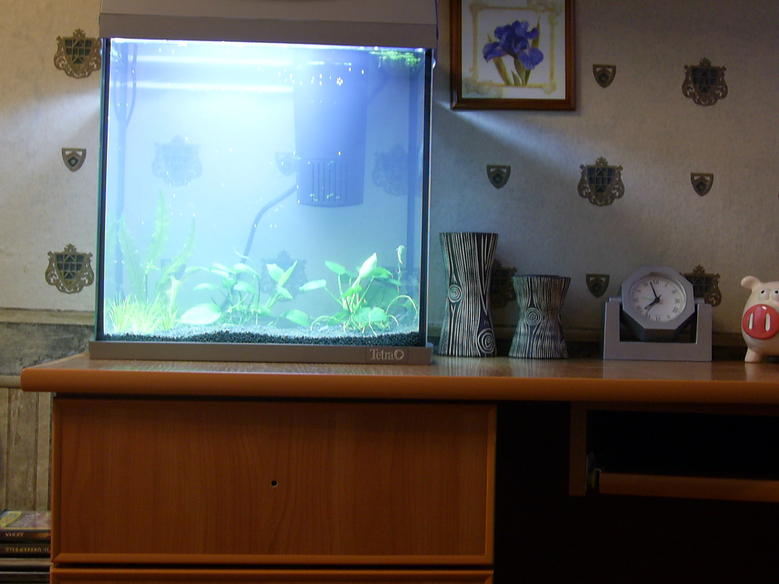Аквариум был в эксплуатации ровно неделю, затем креветки переехали в основной аквариум т.к. ухаживать за двумя аквами мне стало ОЧЕНЬ лень.