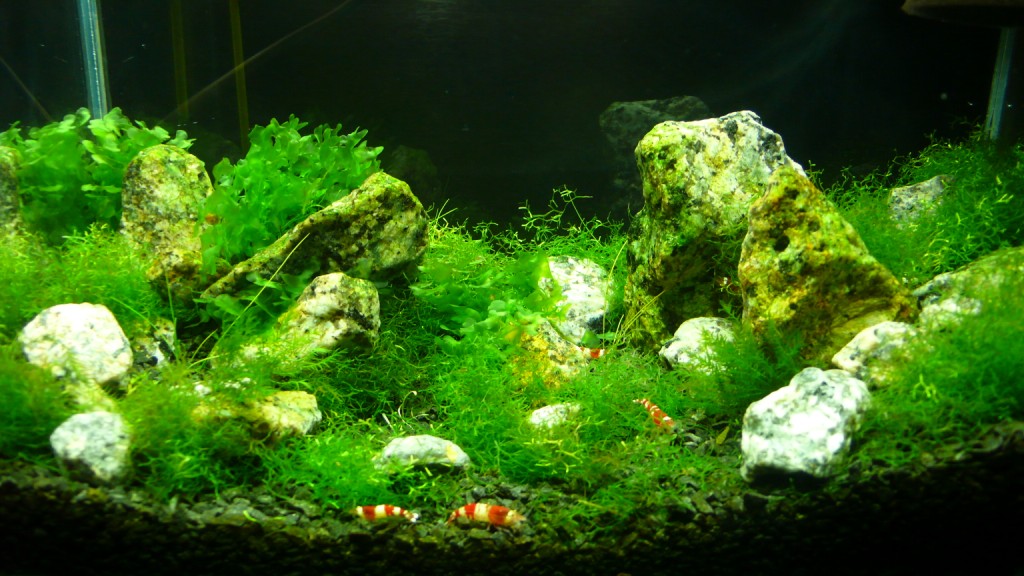 Анечкаумничка все отлично получаеться.....дам маленький совет-подальше держи парфюмы от креветочника,особенно когда ними пользуешся.Знаю точно что креветкам и травке это не понравиться.Тем более что баночка открытая.