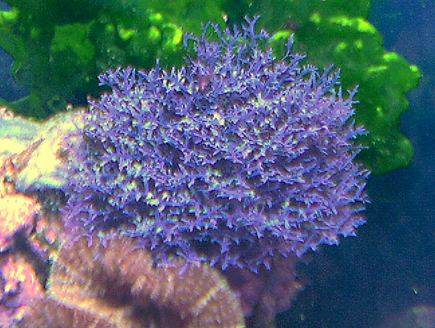 На ЖК. преобретённом в январе 2009г начали рости в апреле фиолетовый макрофит ,если кто-либо сталкивался сподобным макрофитом помогите определить вид. С ув Алексей.  фото выполнено мобилкой,