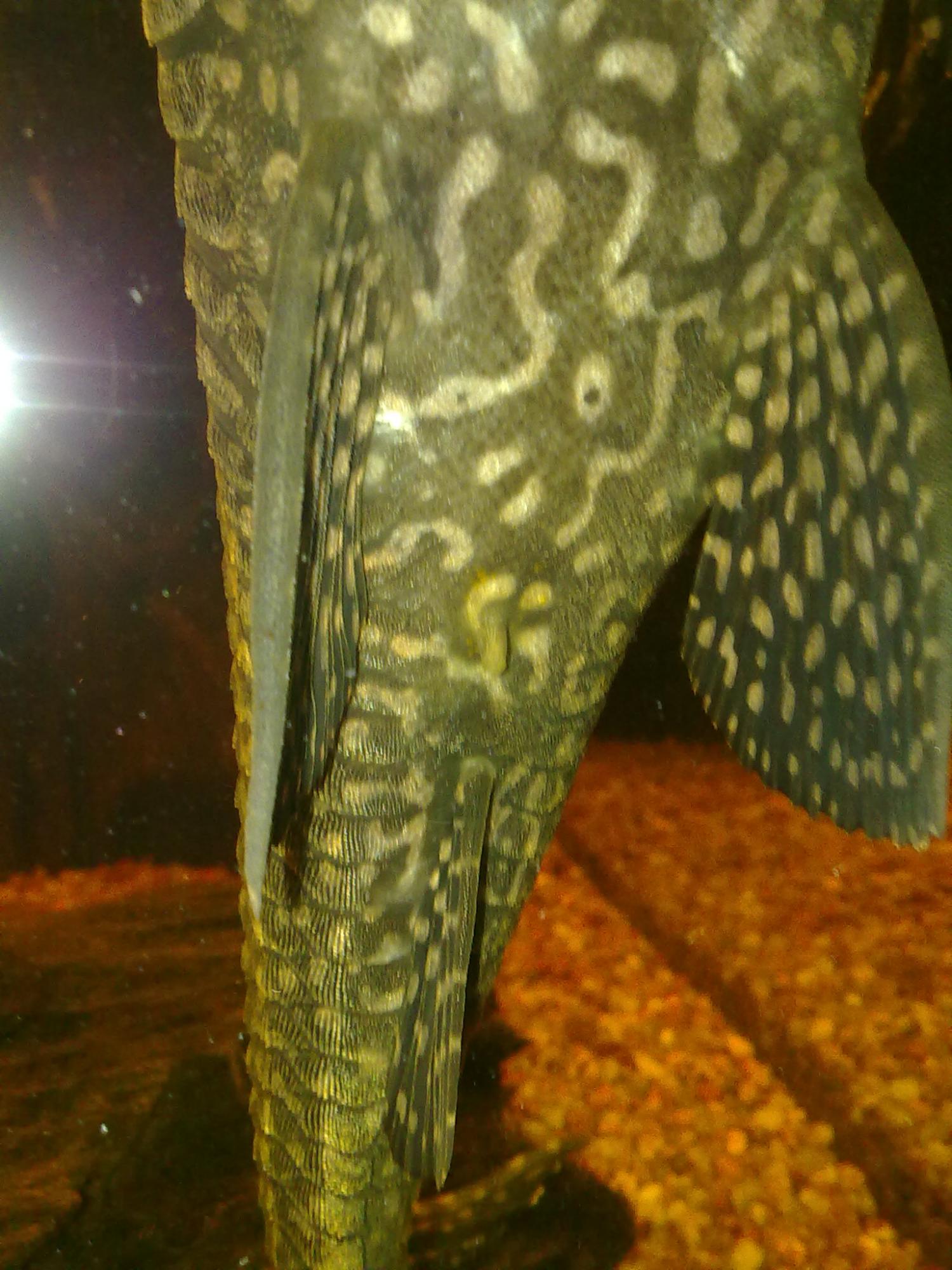 Подскажите, пожалуйста, что случилось с птеригоплихтом? У него что-то торчит из анального отверстия. Появилось недавно, около недели, раньше замеченно не было. Возраст около 1.5 года, активность не изменилась, кушает как положенно.
