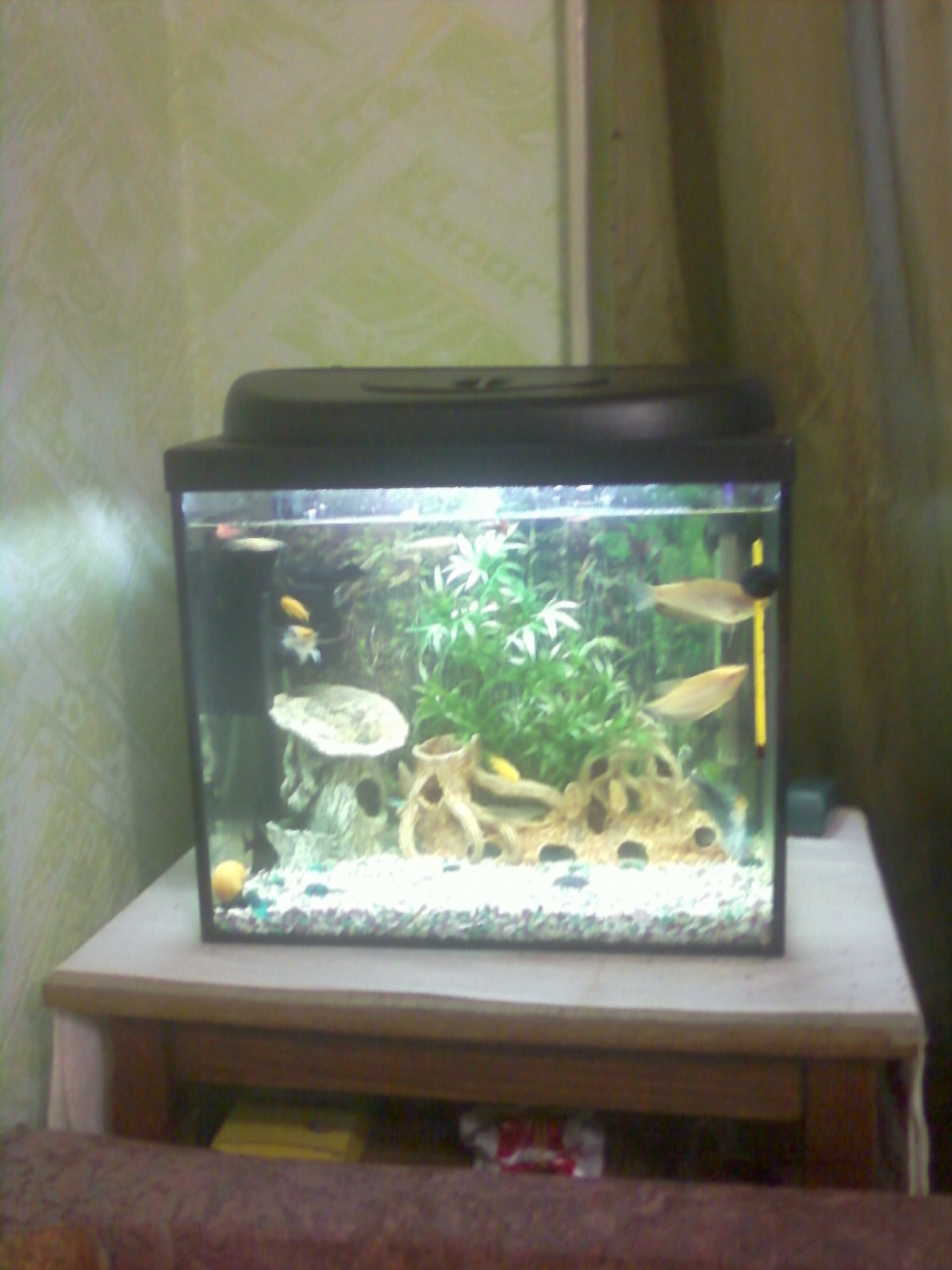 есть аквариум на 35л с крышкой. Аквариуму 2 месяца.