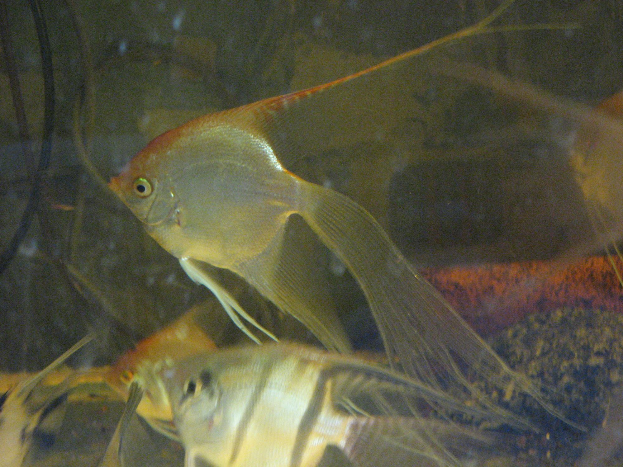 Вся рыба продана, кроме вуалевого полосатого самца, есть полосатые не вуалевые, а также несколько серебристых скалярий.