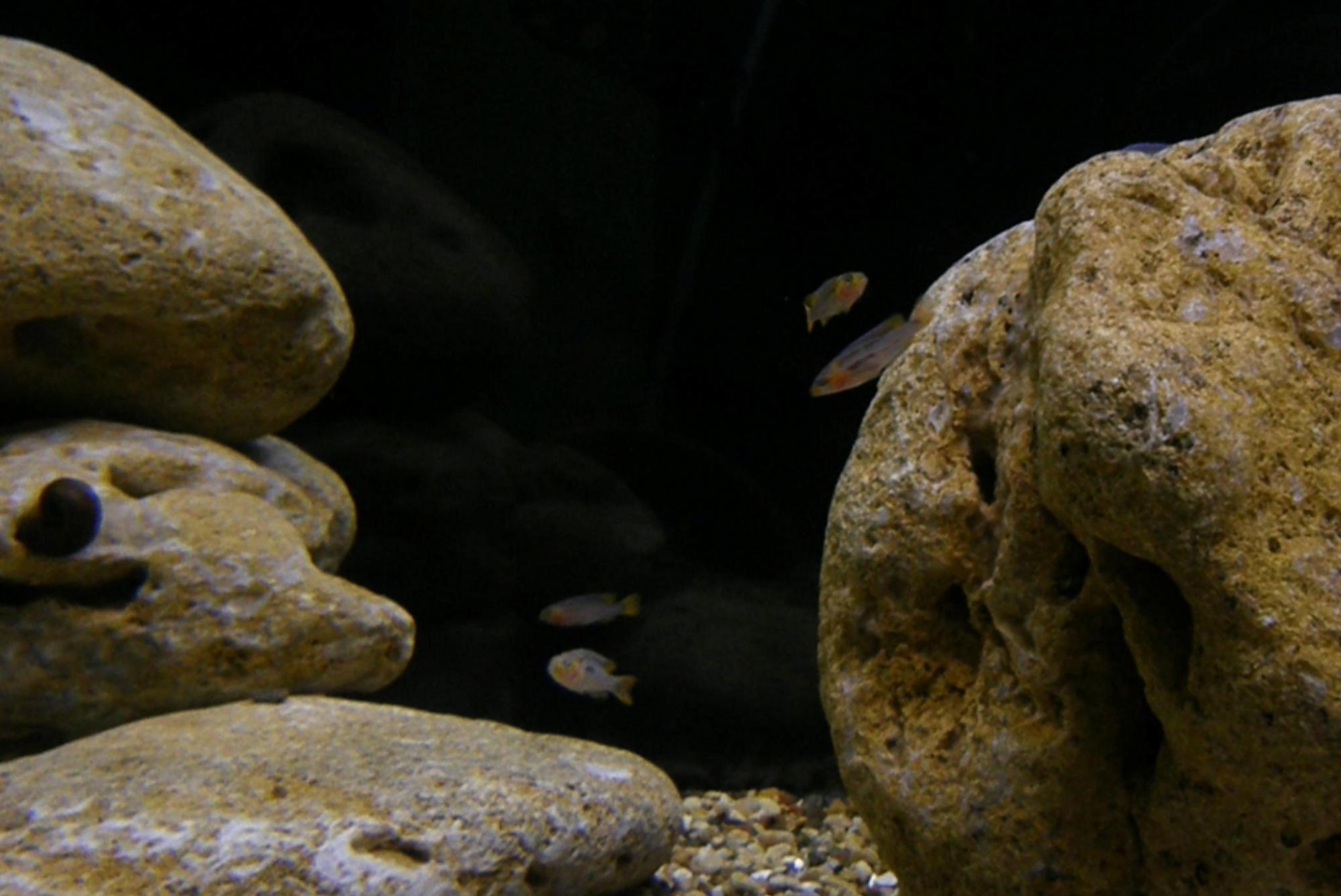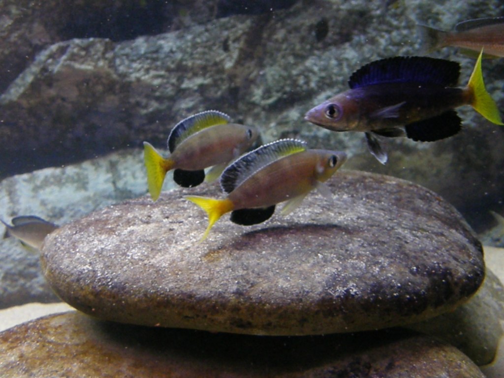 Neolamprologus brichardi - гаремный образ жизни, дерзкое поведение проявляеться почти ко всем соседям, постояно перерывают аквариум, постояно держаться центра аквариума.