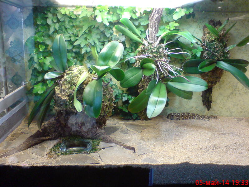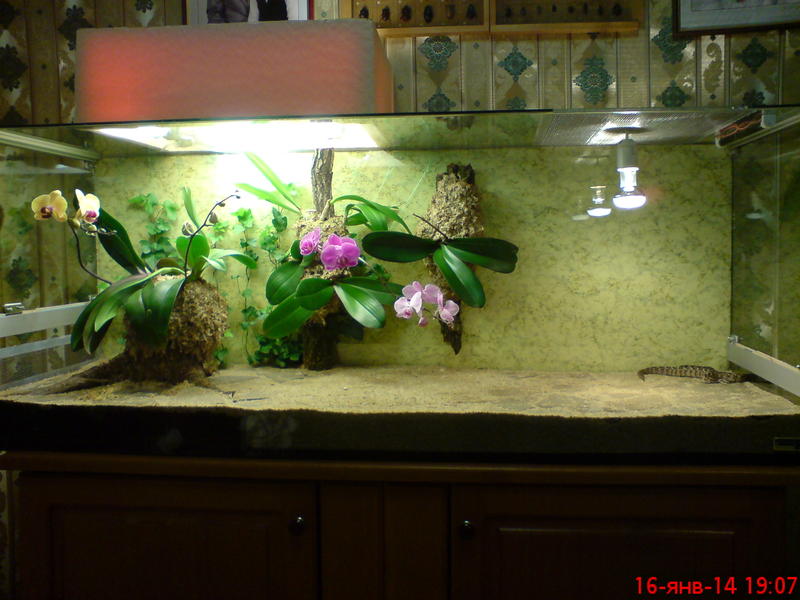 вот такой я сделал светильник для орхидей и плюща в террариум для шумящих гадюк и вот так все сейчас выглядит