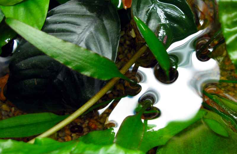 Cryptocoryne x willisii. Данное растение я культивирую довольно давно, не прихотливая крипта, у меня успешно живет как в погруженном состоянии, так и в палюдариуме. Параметры среды следующие: