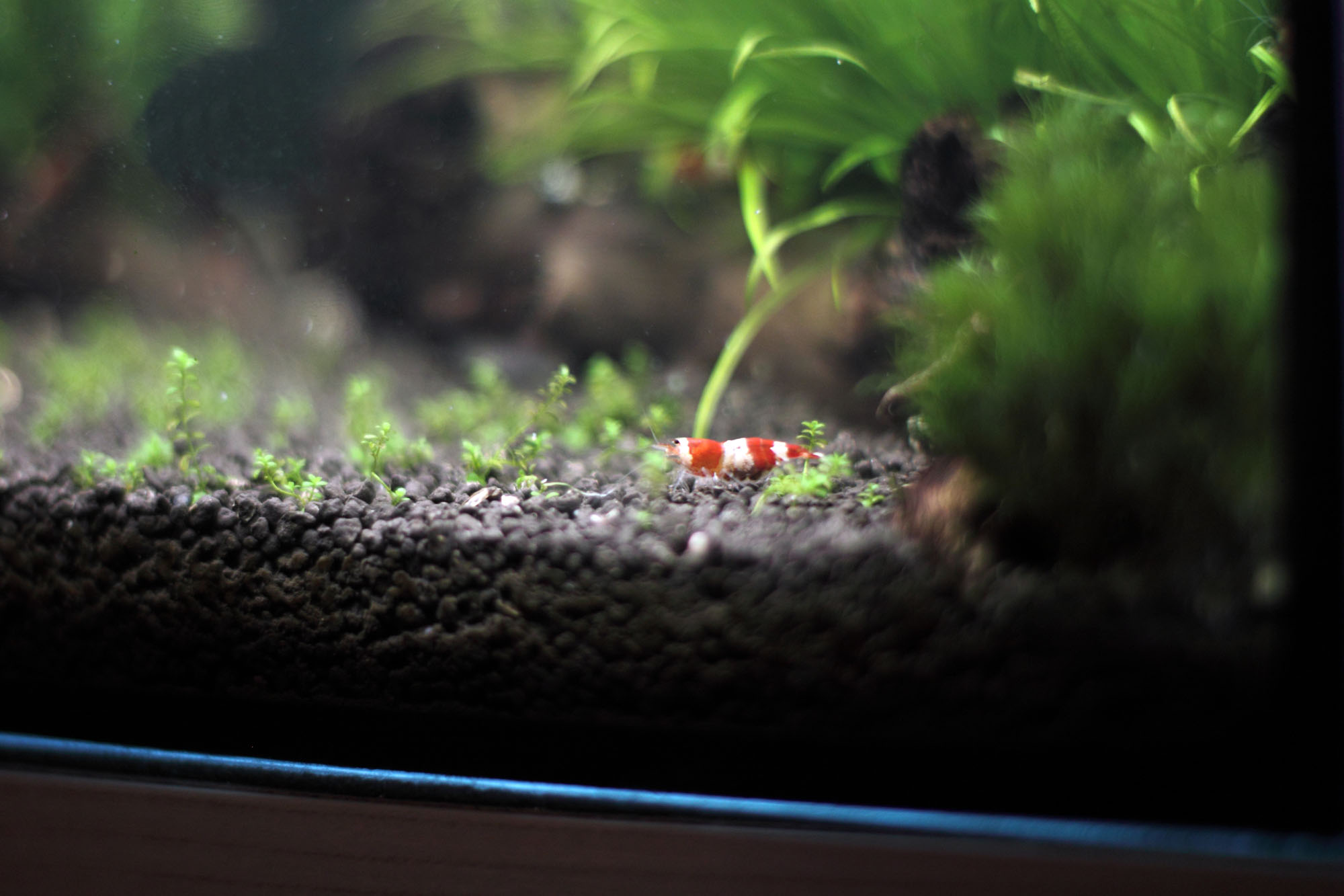 Заменил лампы т5 на Aquael Palnt 11w, свет розовый и креветки в таком освещении - как красные огоньки
